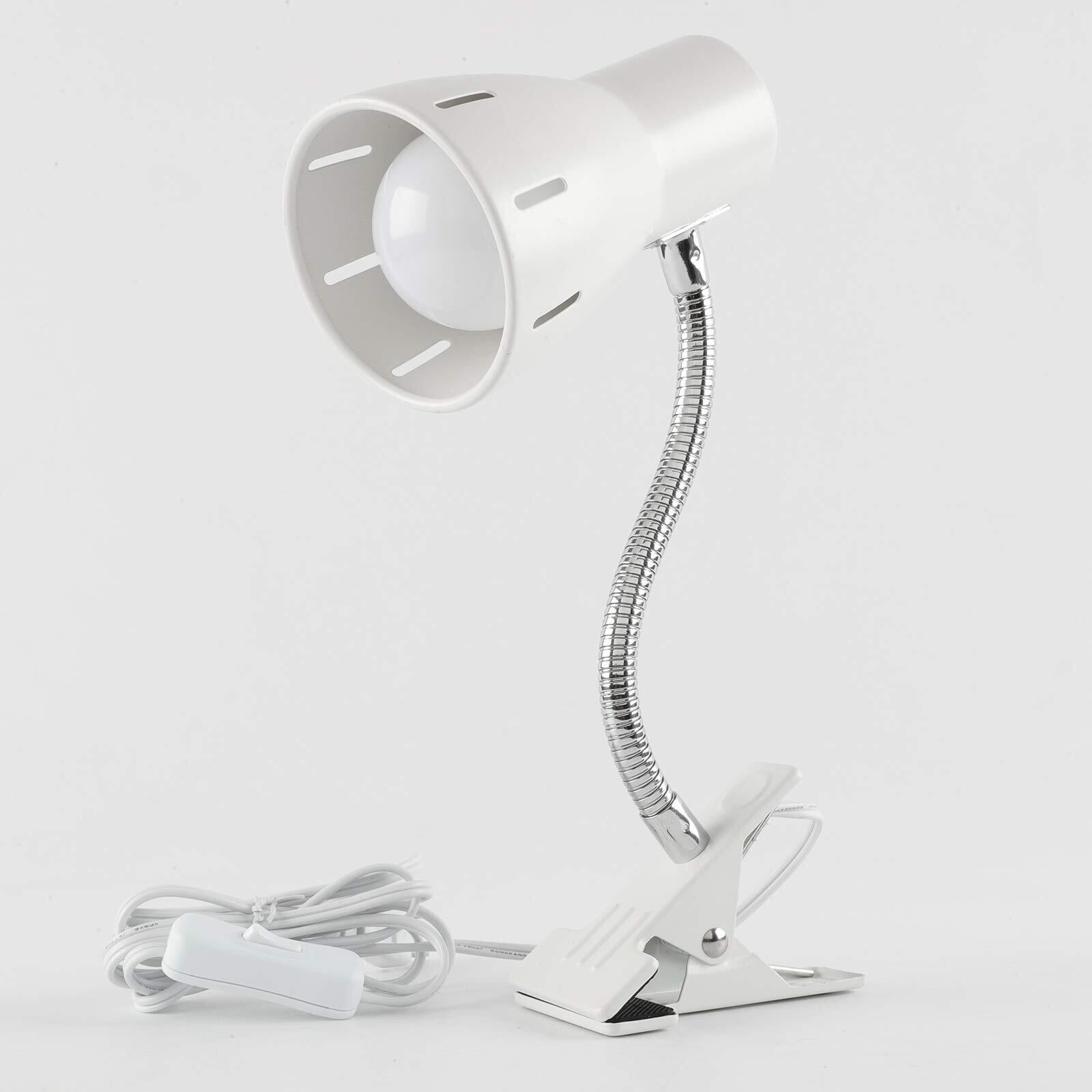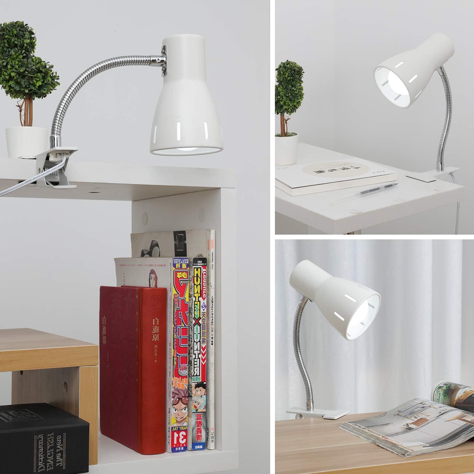 Hzfluo LED クリップライト デスクライト スタンドライト ベッドサイド 卓上ライト 省エネ クローム E26 ホワイト 電球なし