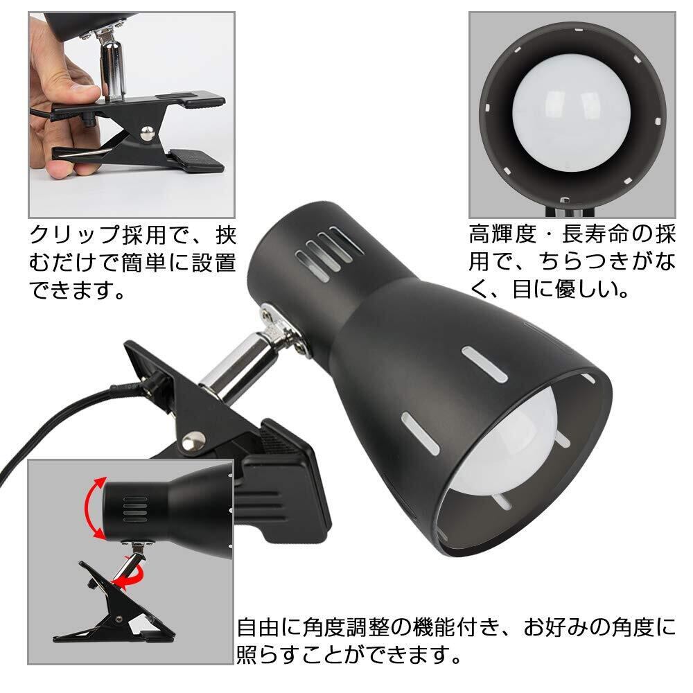 クリップライト led E26 led 電球付き 60w形相当 800lm 9W 昼光色 広配光 中間スイッチ付き 350°回転 読書 仕事 屋内用ライト ブラック