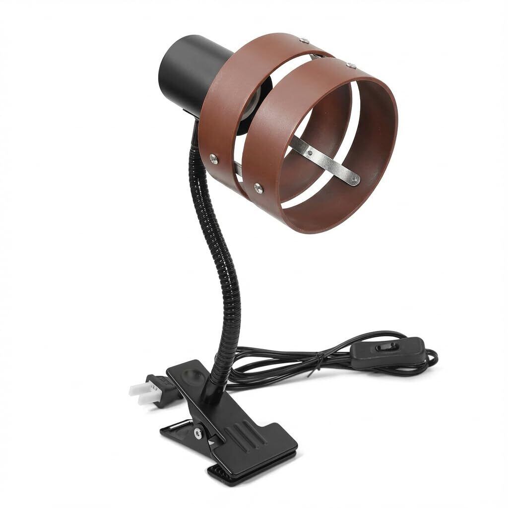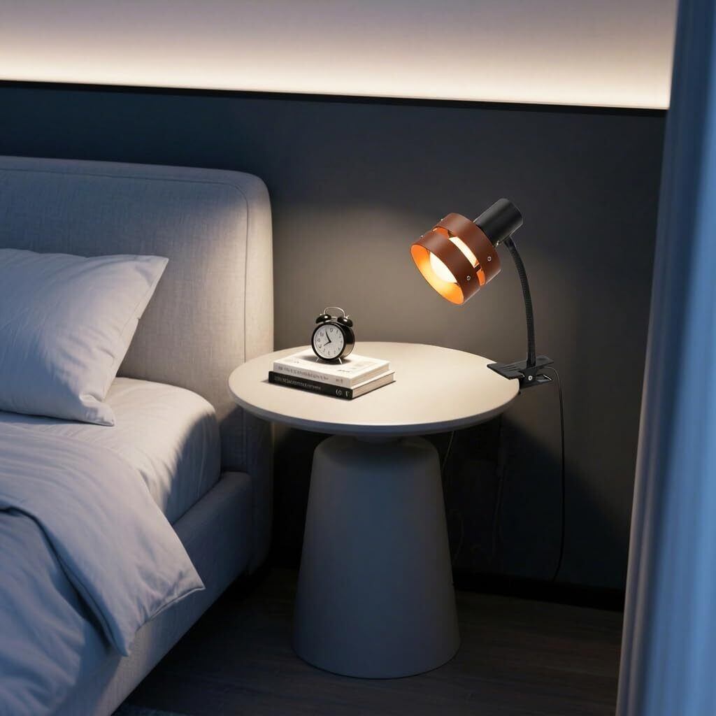 Aiwode クリップライト 茶色円形デザイン(プラスチック製) E26対応 360度回転 スイッチ付き 高級 目に優しい 節電 省スペース設計 寝室 ベッドサイド デスクライト 読書用 高級レストラン照明 植物育成ライト対応 白 1個 電球はありません