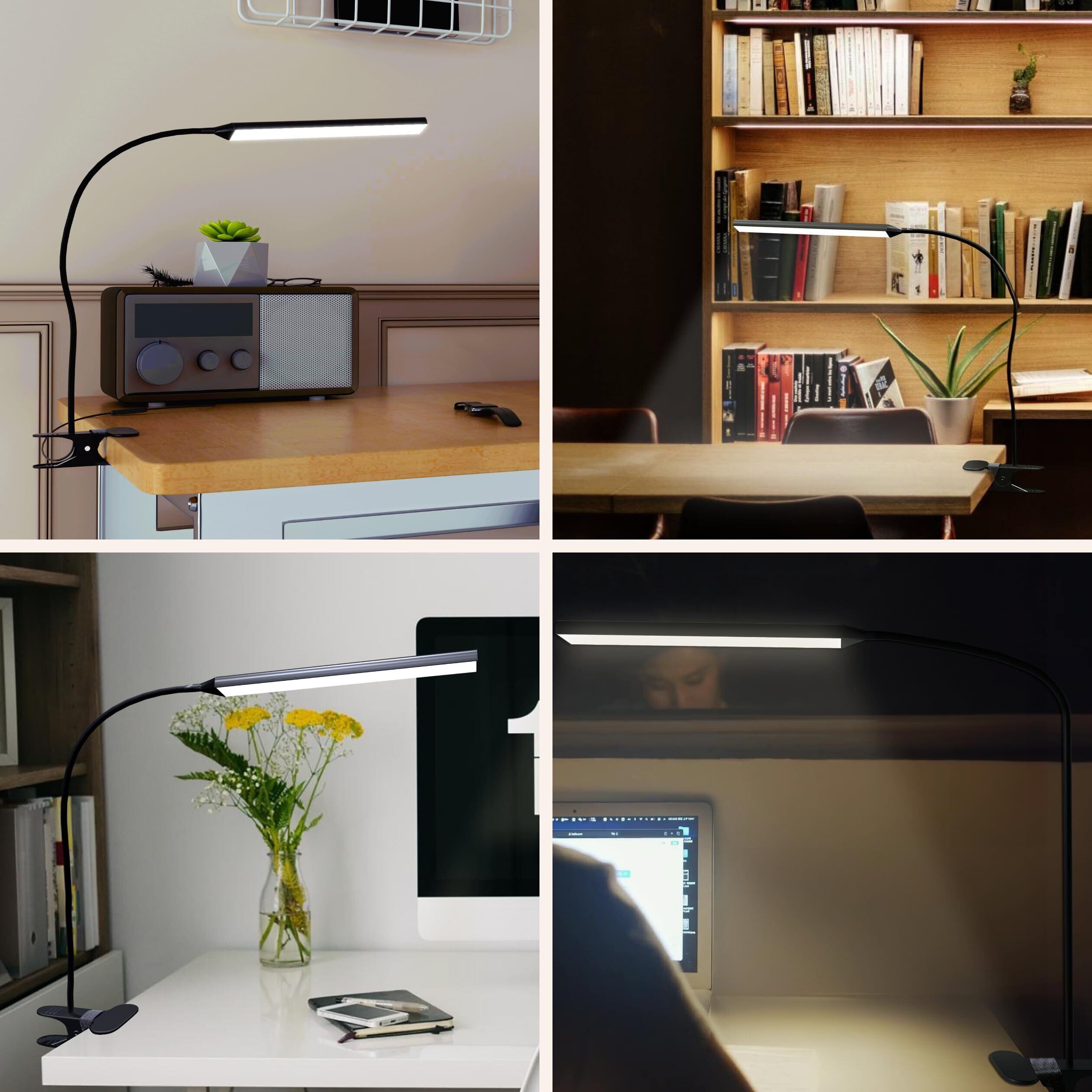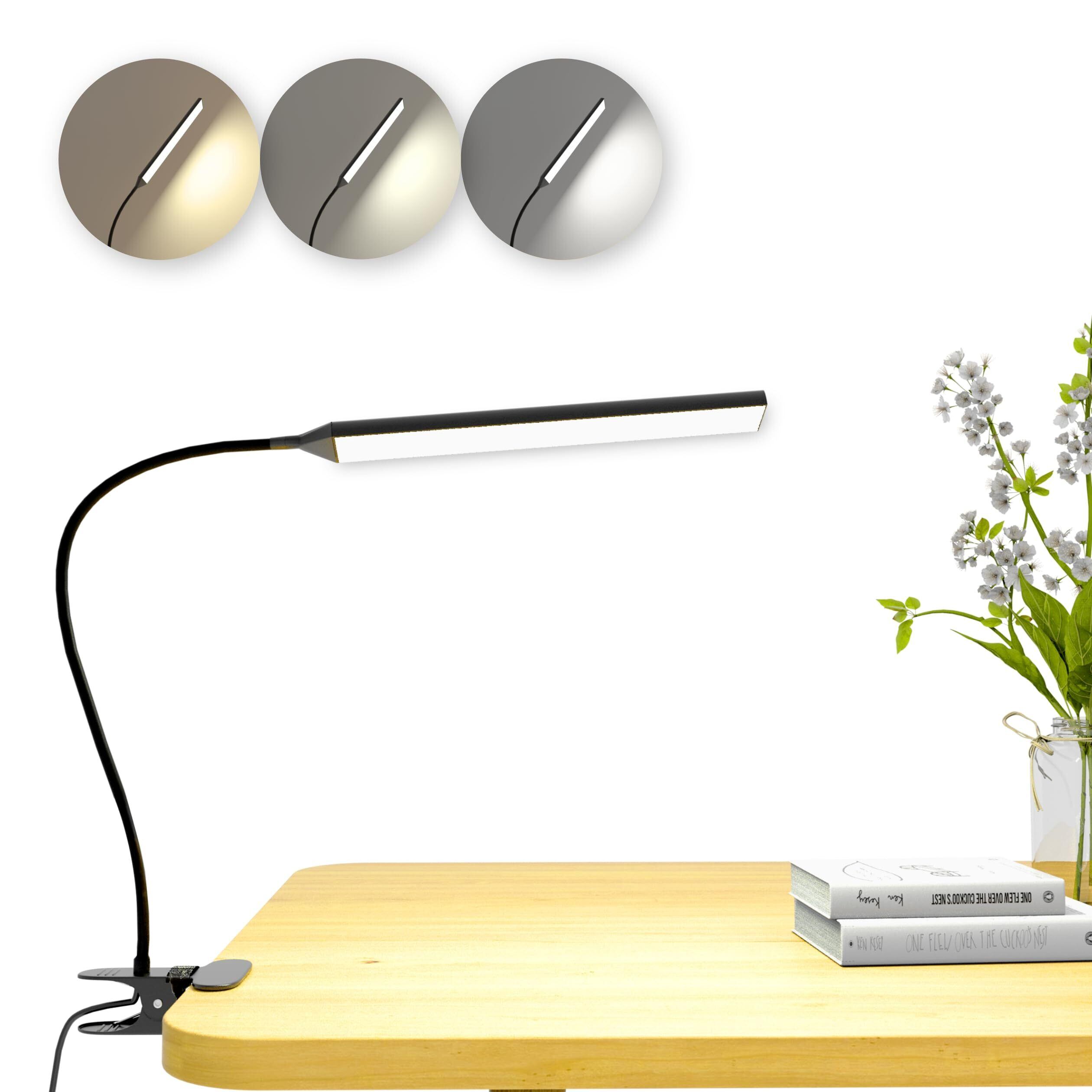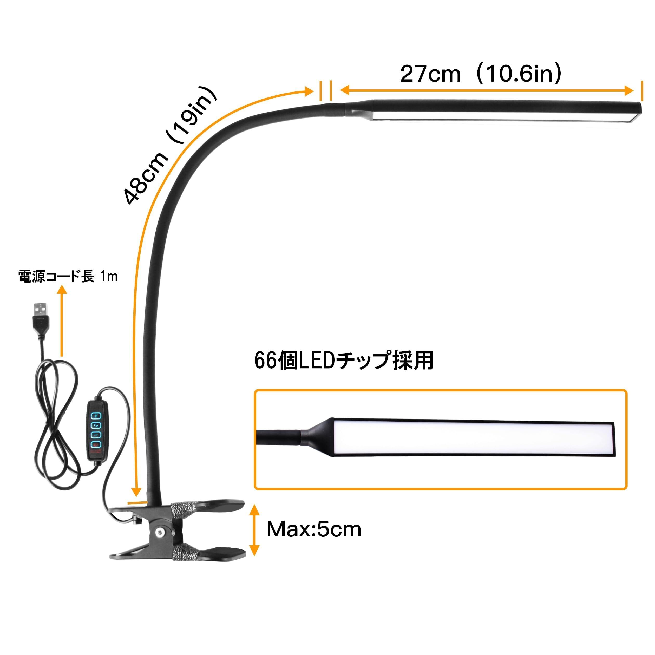 ORALUCE クリップライトLED 明るい 3段階調色 10段階調光 デスクライト クリップ 目に優しい 電球色/昼白色/昼光色 8W 800LM USB給電式 スタンドライト おしゃれ 細身 360°回転 省エネ 卓上ライト 学習机 勉強机 仕事 授乳 読書灯 ブラック