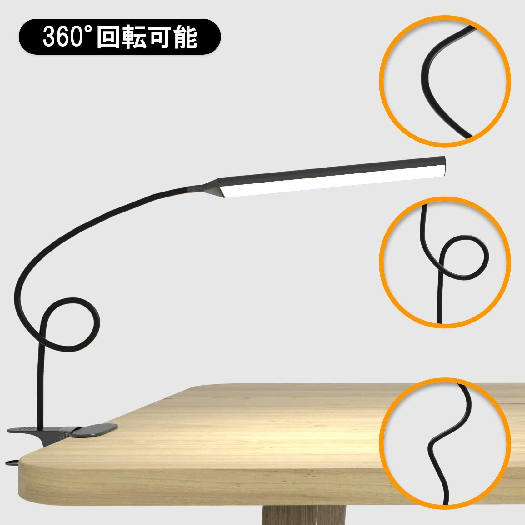 【360°回転可能】自由度の高いアームと回転クランプを備えており、360度の広い範囲で照明の角度を調整できます。デスク上のLEDライトの光を任意の方向に最適に調整して利用できます。