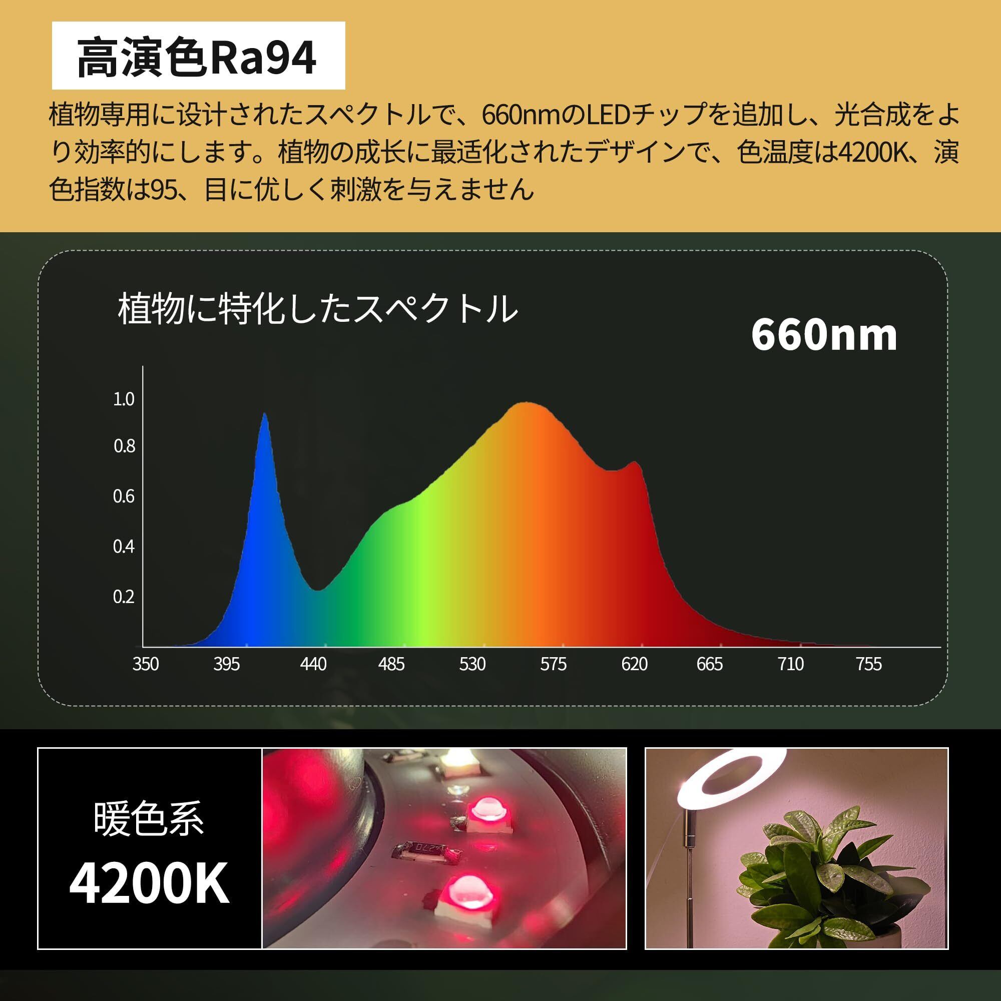 【特徴1:独立型ベース、いつでもどこでも植物を照らす】 エンジェルリング全光スペクトル植物ランプは独立型ベース設計を採用しており、土壌にランプを差し込む必要がありません。設置がより便利で、いつでもどこでも植物に十分な光を提供し、光の恵みの中で植物を健やかに成長させます。
