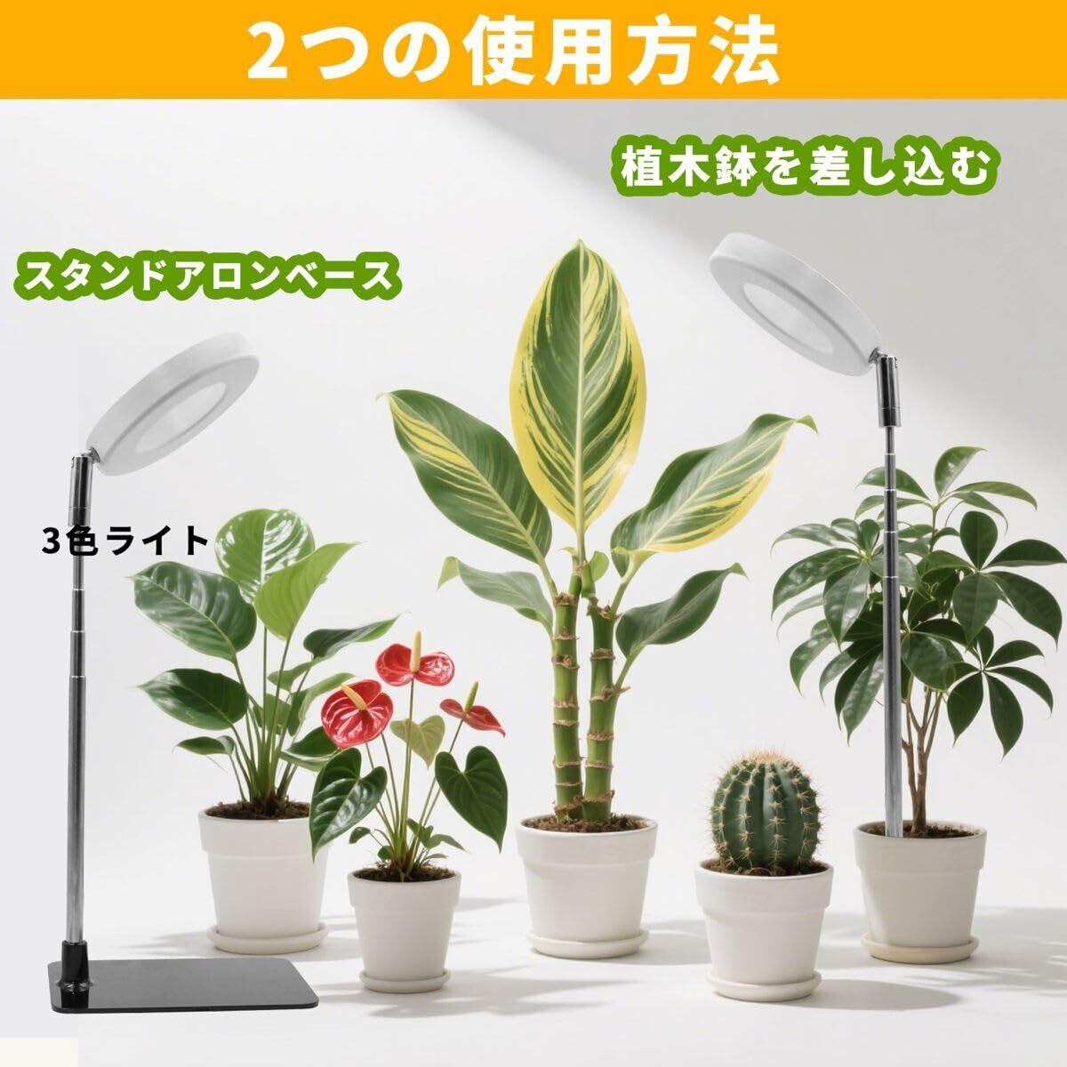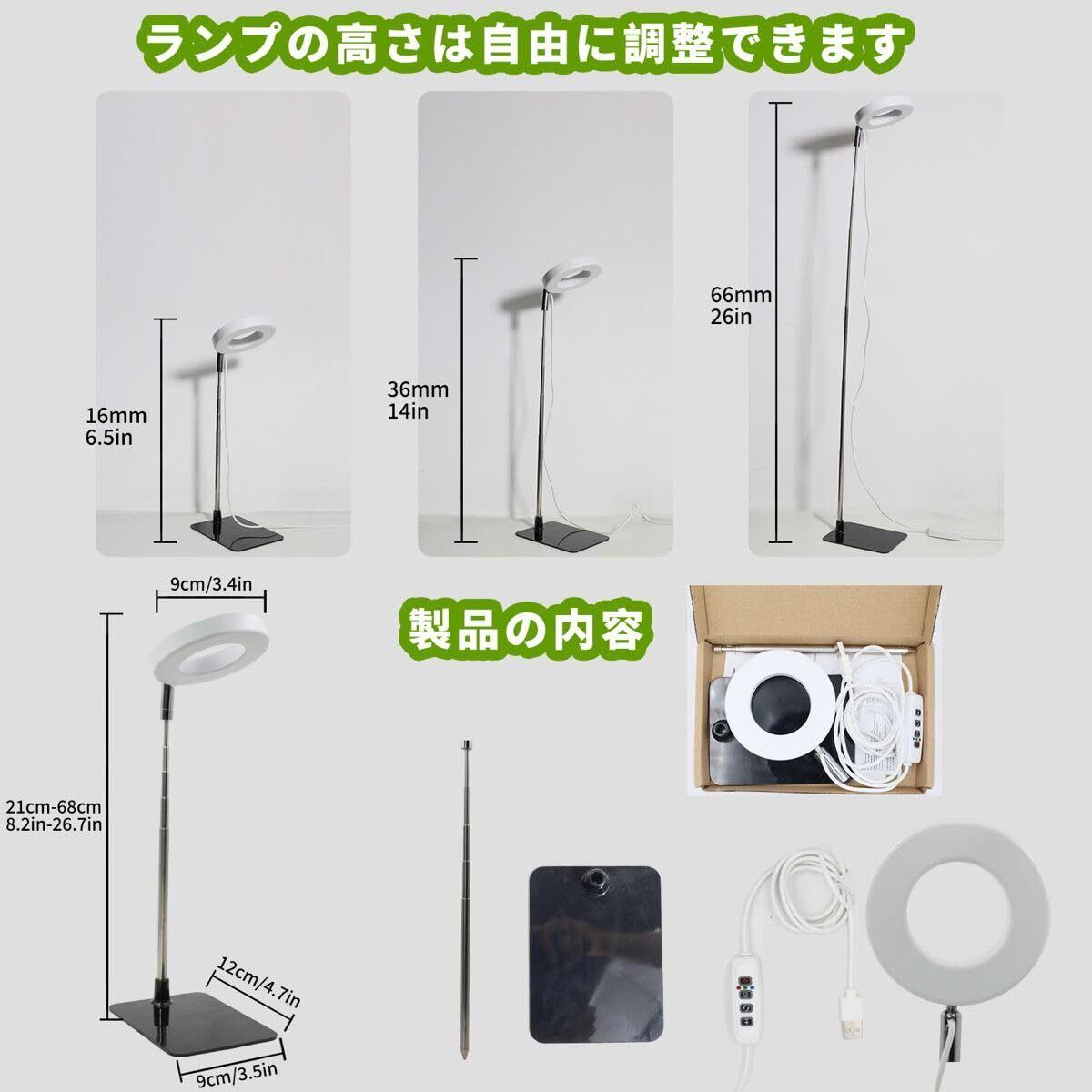 [2WAY設置対応&高さ調節可] 鉢への挿し込み式 or 自立式ベースで設置場所を選ばず、高さも8.2~26.7インチまで調整可能。成長に応じて光源の距離を簡単に調整可能