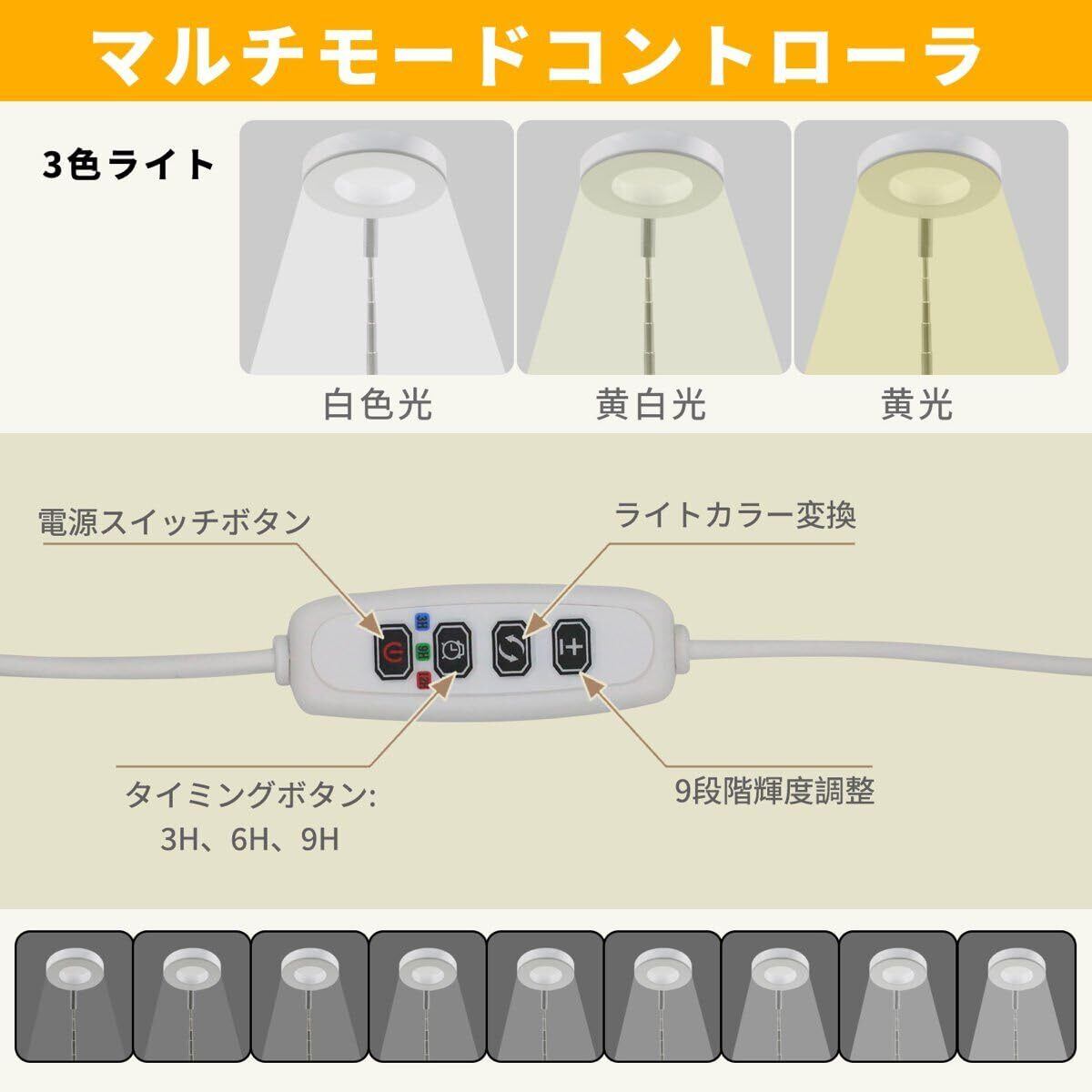 植物育成ライト LEDスタンド 高さ調整可 USB給電式 室内栽培用 9段階調光 タイマー機能(3H/9H/12H) 太陽光模擬 省エネ 水耕栽培 多肉植物 苗木 観葉植物用
