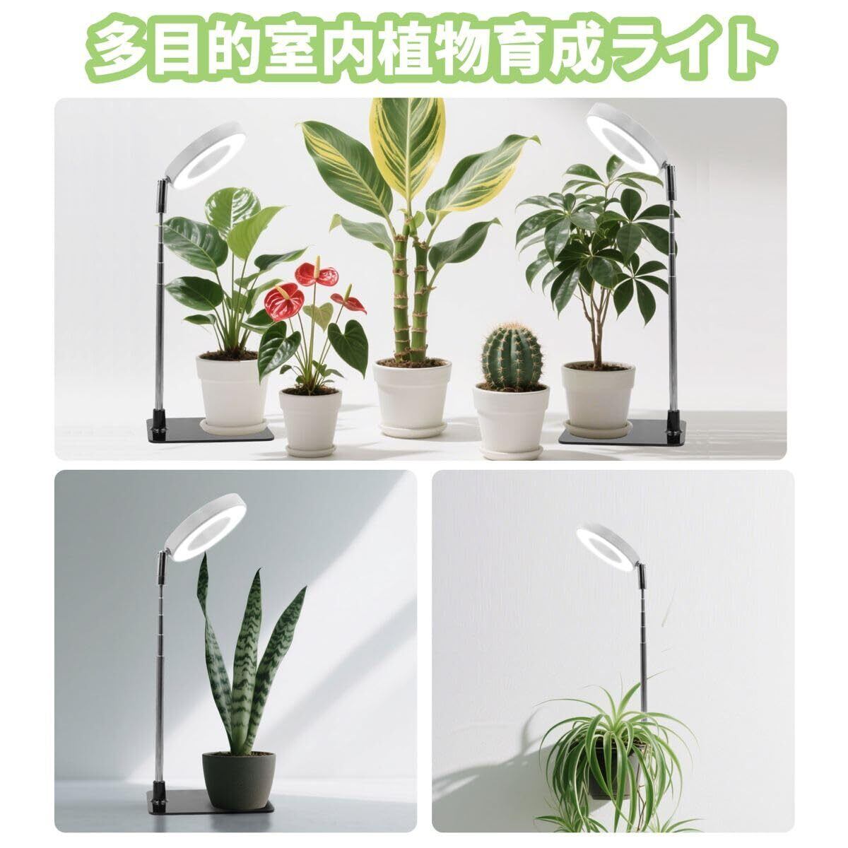 この植物育成ライトは、室内栽培に最適な全光スペクトルLEDを搭載し、日照不足を補って植物の健康的な成長を支援します。9段階の調光機能により、育てる植物の種類に応じて最適な明るさを設定可能。さらに、3/9/12時間の自動タイマー機能付きで、毎日の電源管理が不要です。高さ調節と2WAY設置にも対応しており、スペースや植物の成長に応じた柔軟な使用が可能。USB電源式で省エネ設計、観葉植物、多肉植物、苗木、野菜、水草など幅広く活用できます。家庭菜園・ガーデニング初心者から経験者まで、すべての屋内栽培愛好者におすすめの一台です。