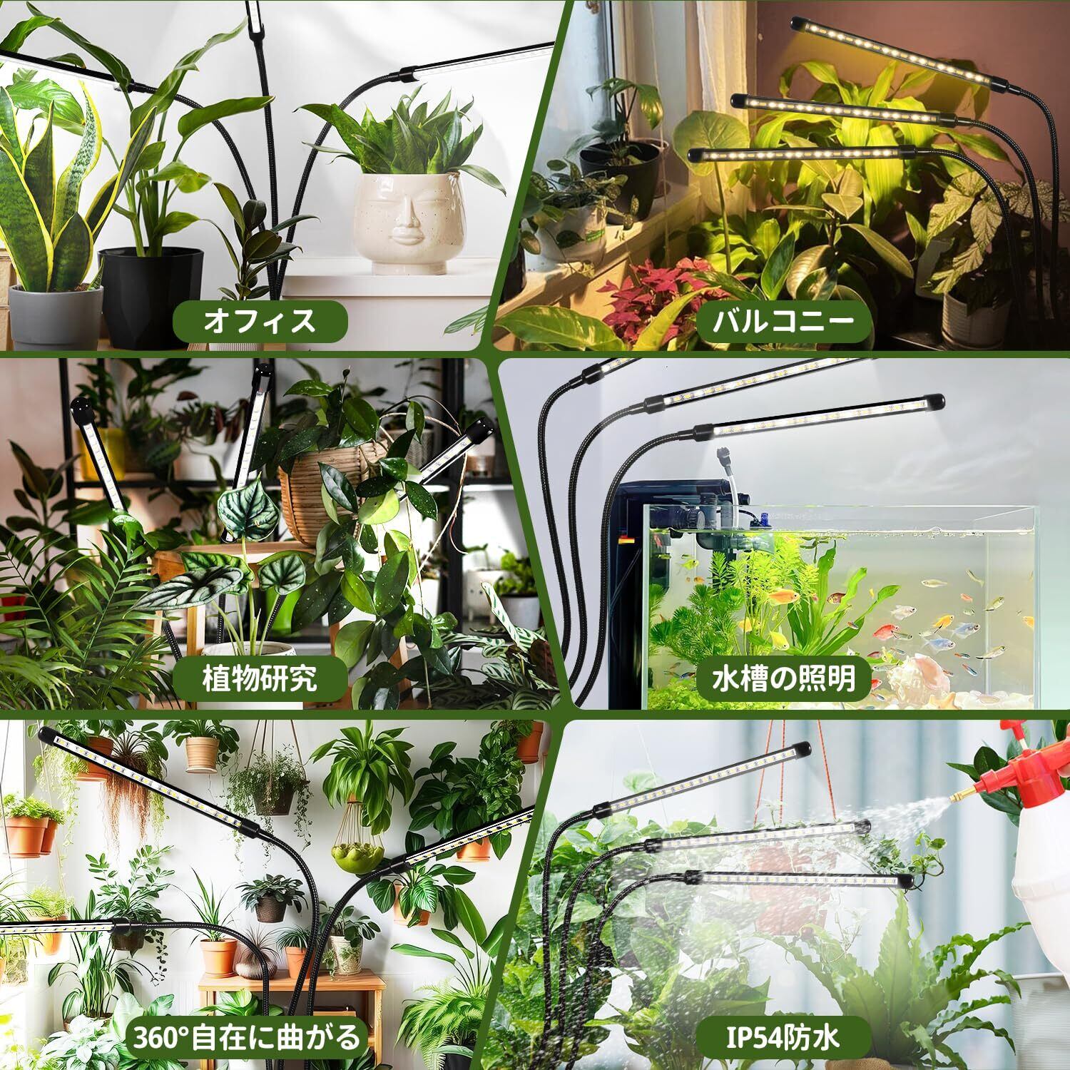 【IP54防水・使用場所】USB接続のクリップ式植物用ライトは、360°調節可能なグースネックを備えており、どの向きでも植物に最適な角度で光を照射することができます。バルコニー、温室、暗い部屋、オフィスなどに適しています。お客様のニーズを満たすことができ、エネルギー消費を削減しながら植物に効率的な照明を提供します。LED育成ライトはIP54防水の防水仕様で、水やりの心配もありません。