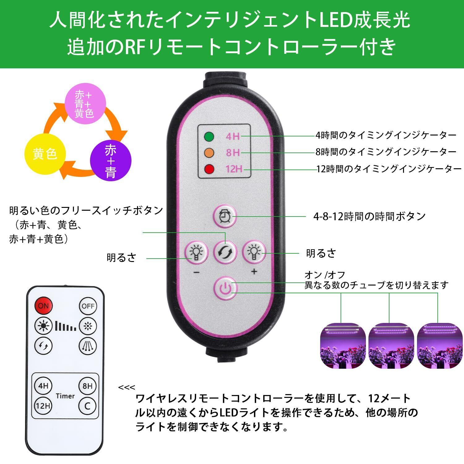 【10段階調光&4/8/12時間タイマー】10段階調光機能付きで、植物の必要に応じて光の明るさを調整できます。4/8/12時間タイマーで自動点灯スケジュールを設定できます。