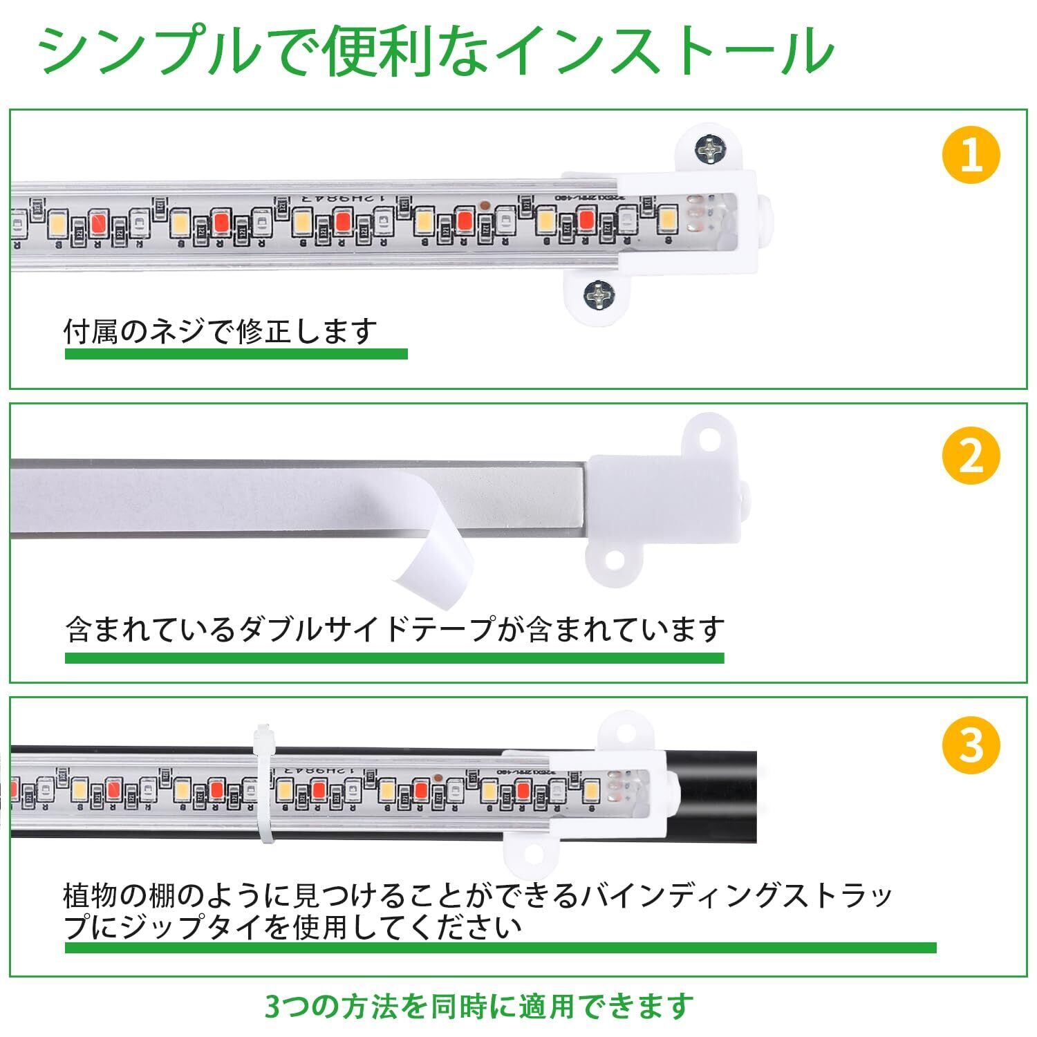 【柔軟な設置オプション】 多様な設置オプションをご用意しています。木製の植物棚にはネジでしっかりと固定したり、滑らかな壁には両面テープで簡単に固定したり、金属フレームには結束バンドで固定したりと、様々なスペースに簡単に設置できます。
