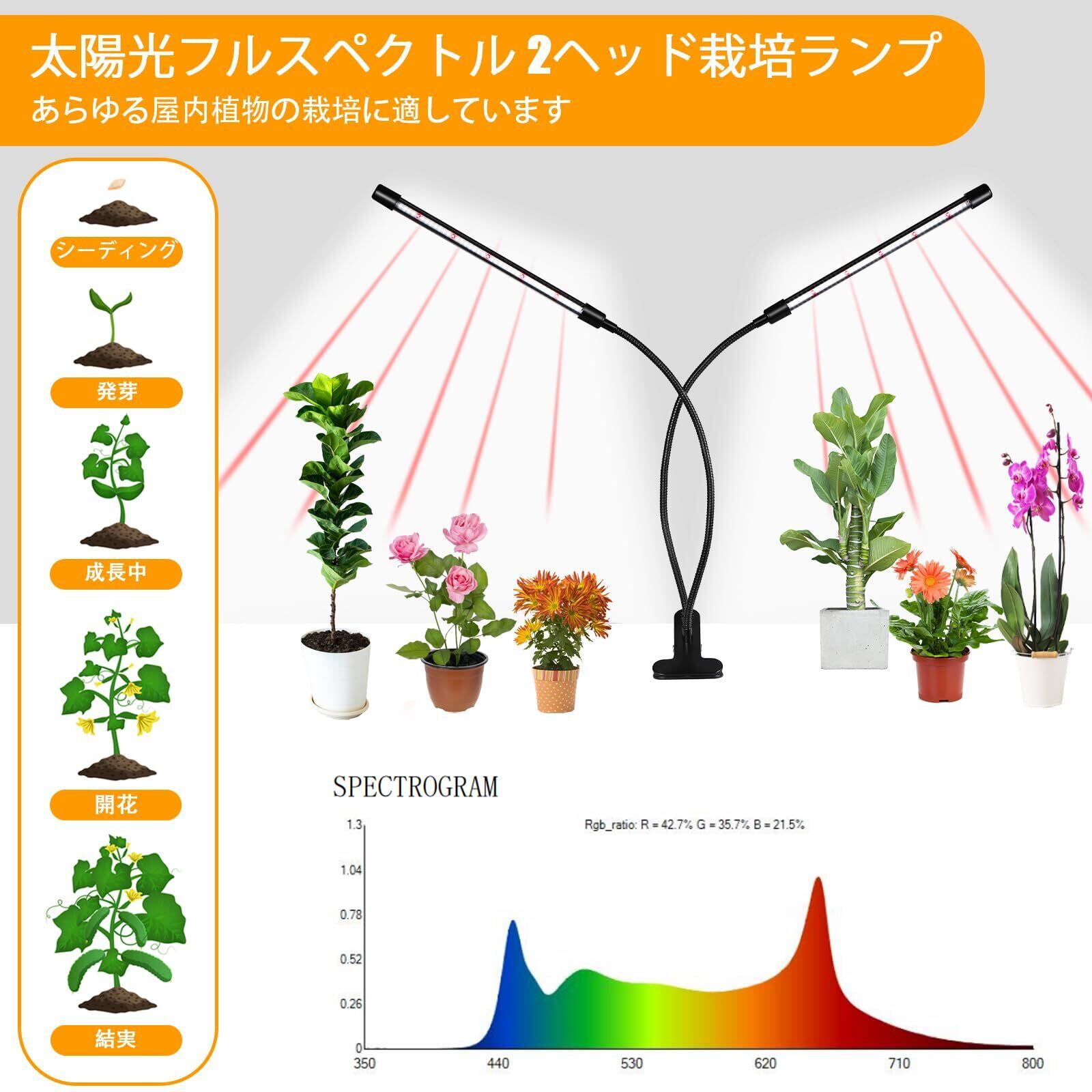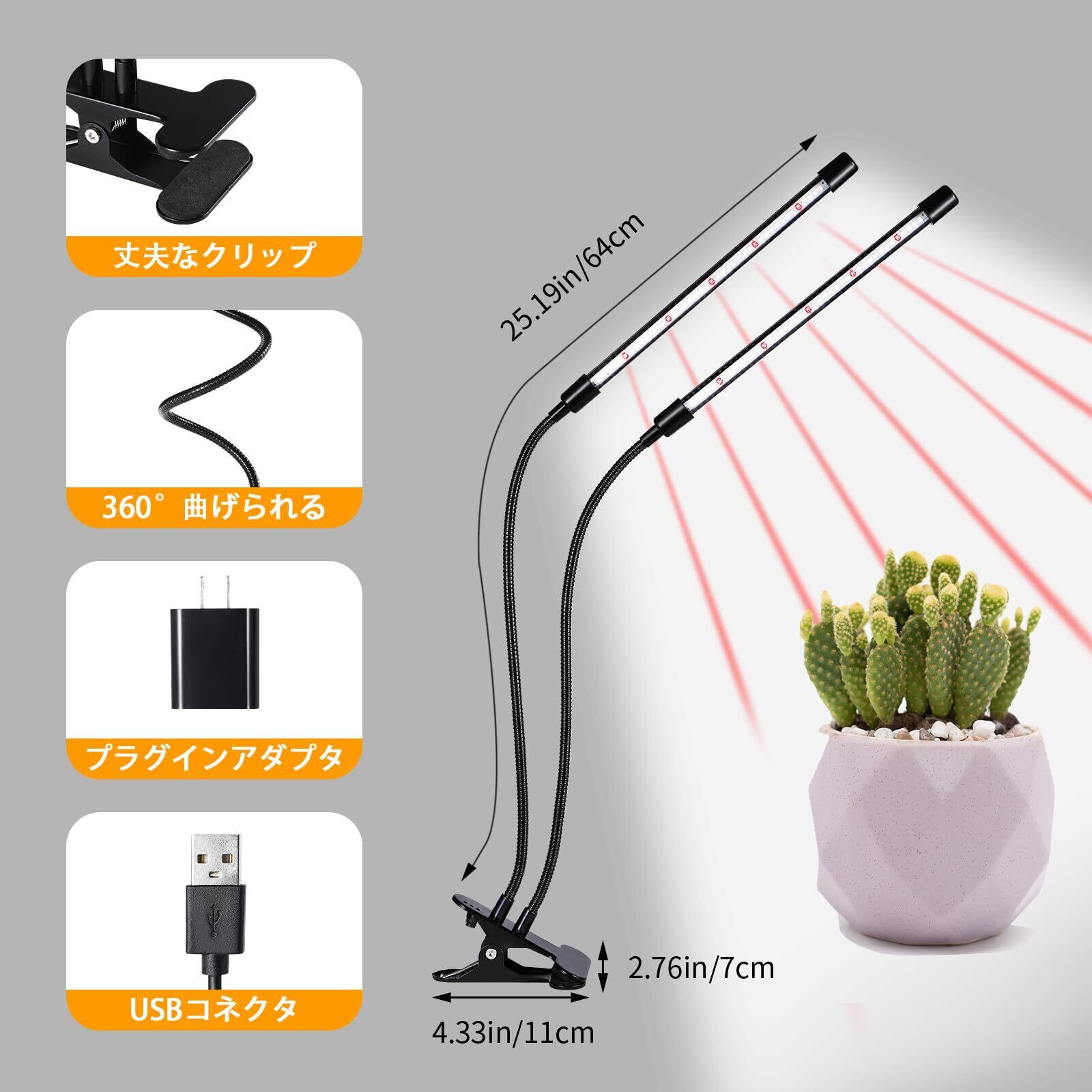 屋内植物用栽培ライト、84 LED デュアルヘッドクリップ植物ライト、フルスペクトル、フレキシブルグースネック、3/6/12時間タイマー、自動オン/オフ、6段階調光可能 (Sunlike ホワイト+レッド)