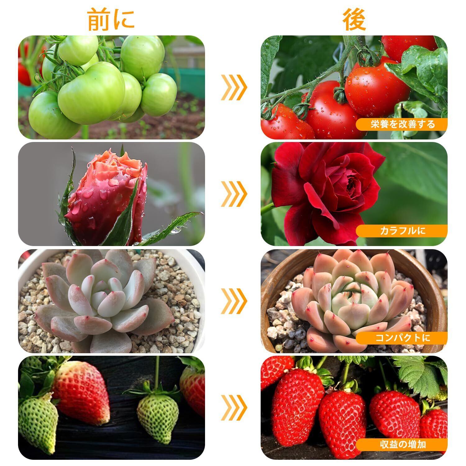 【室内植物に安全 & 幅広い用途】多肉植物・観葉植物・ハーブ・野菜・花卉など、多種の室内植物に安全に使用できます。開花時間を延ばし、植物の発芽と開花を促進し、果物や野菜の熟成と甘みを高め、多肉植物の健全な成長をサポートし、居間・ベランダ・オフィスなど小スペースでの室内栽培に最適です