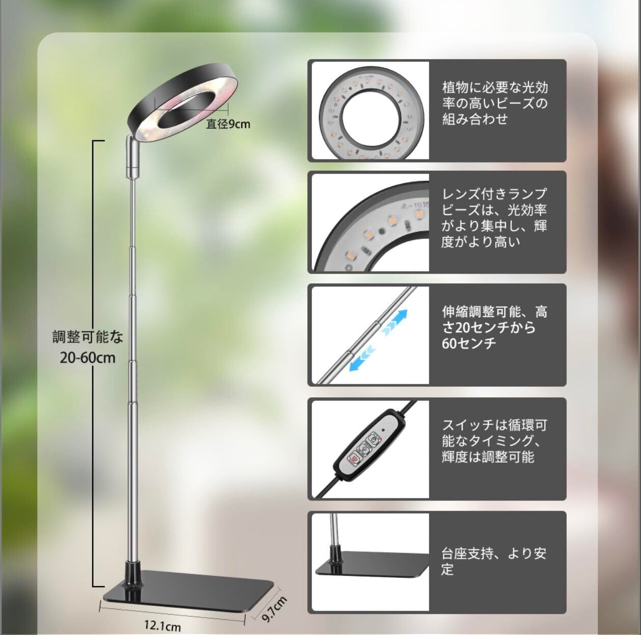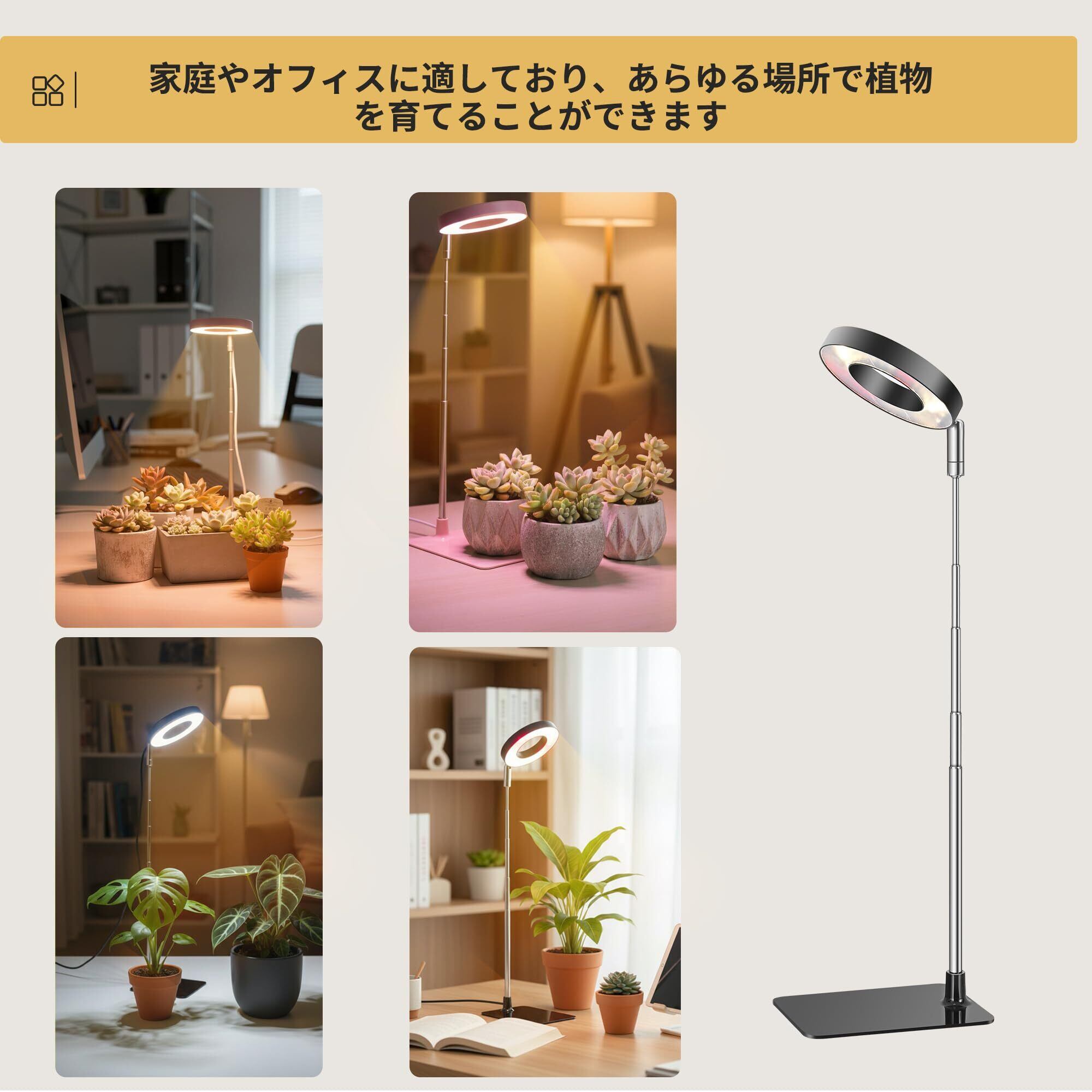 【特徴1:独立型ベース、いつでもどこでも植物を照らす】 エンジェルリング全光スペクトル植物ランプは独立型ベース設計を採用しており、土壌にランプを差し込む必要がありません。設置がより便利で、いつでもどこでも植物に十分な光を提供し、光の恵みの中で植物を健やかに成長させます。