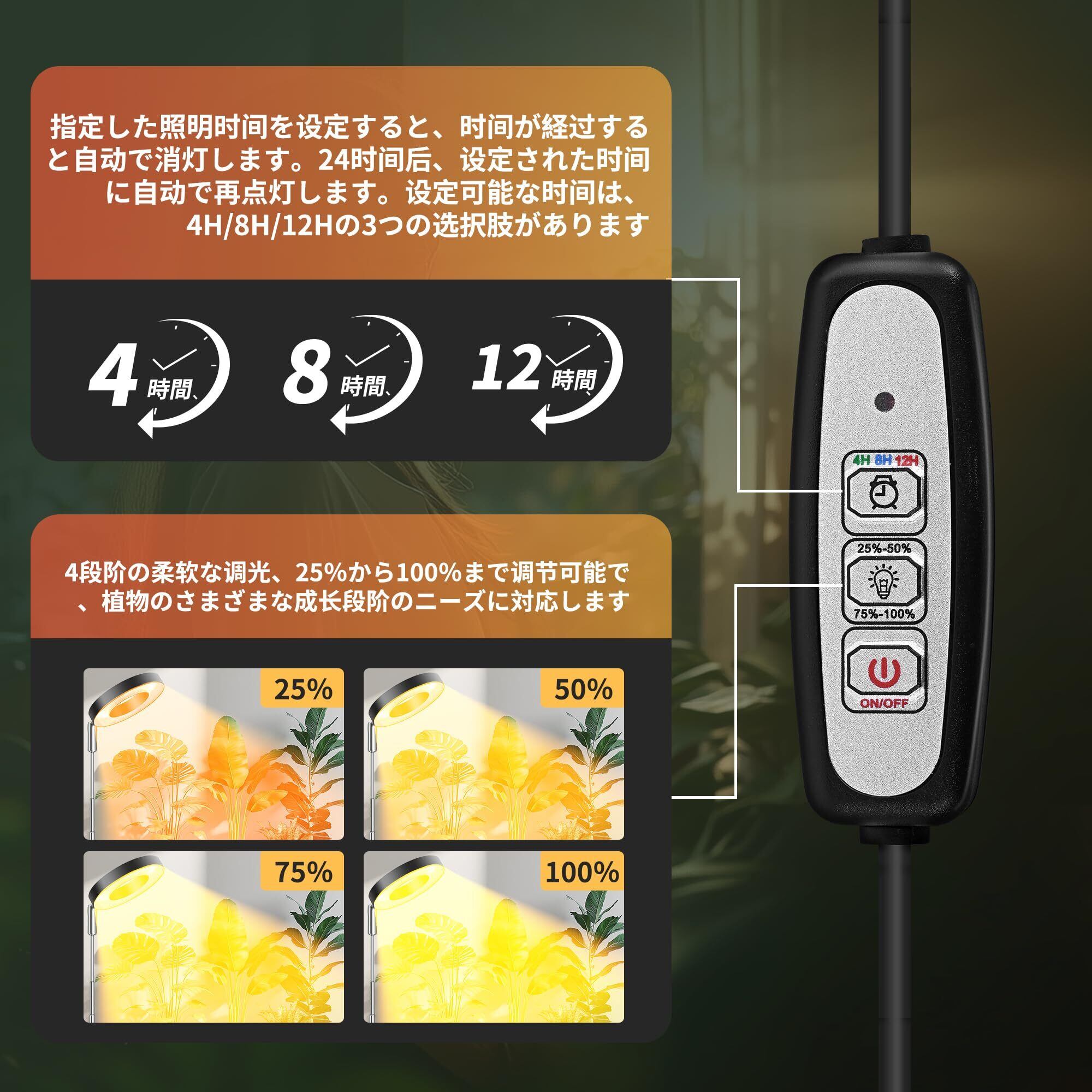 植物育成ライト LED 室内栽培ライト 調光4段階 定時機能(4H / 8H / 12H) 高さ調節可能 省エネ 太陽光模擬 室内栽培用 USB給電