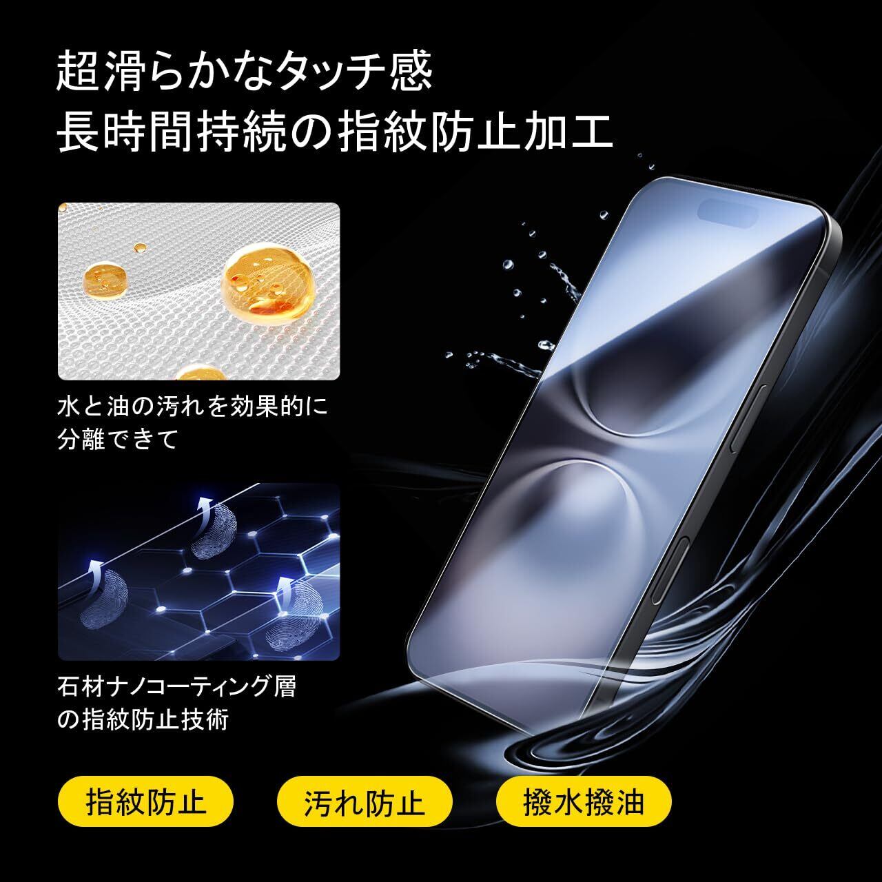 【高品質素材!指紋防止&撥水撥油!】 指紋を防ぎ、滑らかで快適な操作感を実現。特殊コーティング処理で、指紋の付着を軽減、日常生活での汚れや油脂などもティッシュなどで軽く拭くだけでとれます。元々の画質が損なわれません。