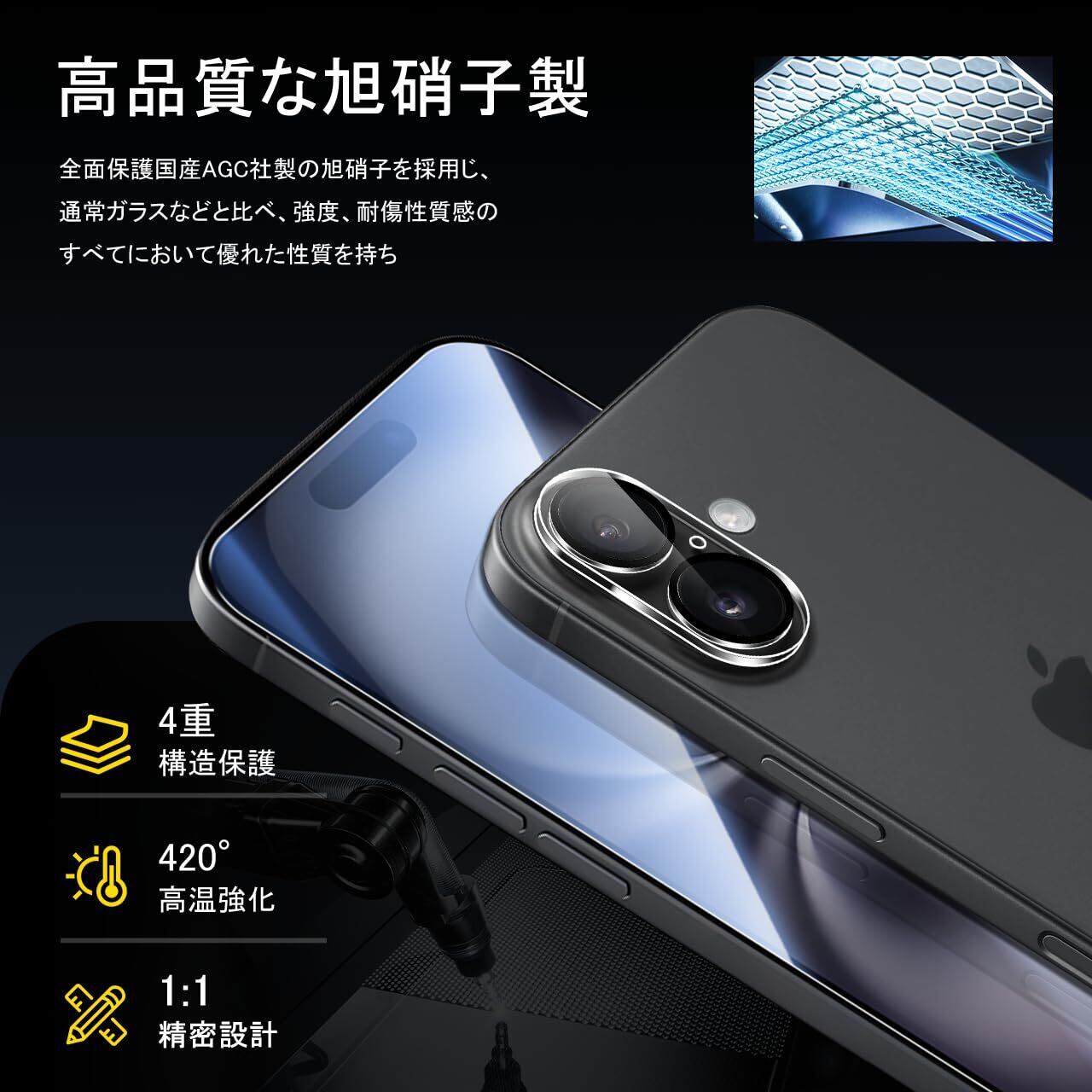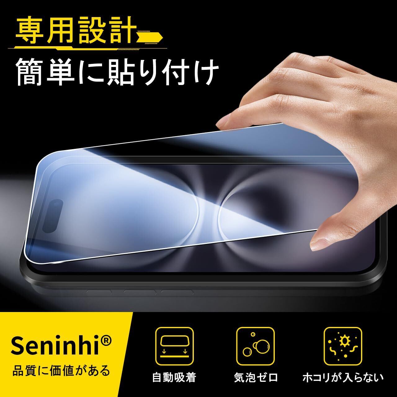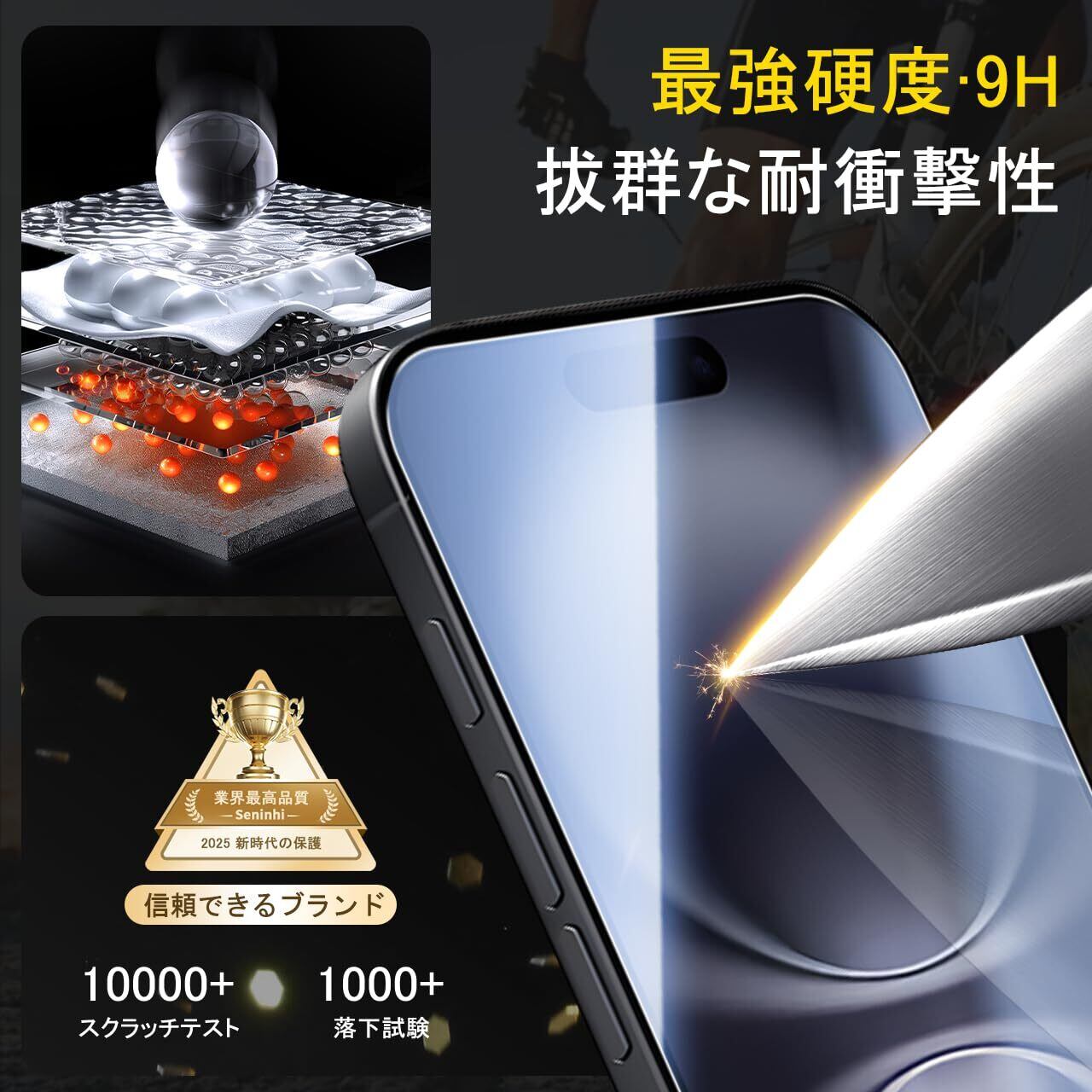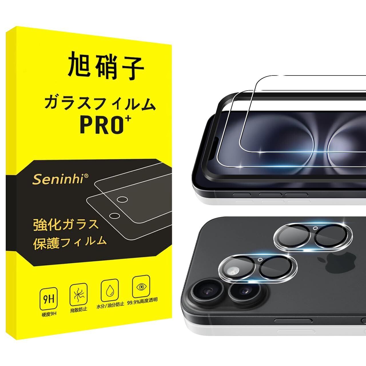Seninhi 対応 iPhone 17 ガラスフィルム (2枚) + カメラフィルム(2枚)【旭硝子素材製 - 4枚入り+ ガイド枠 】アイフォン 17 フィルム iPhone17 保護フィルム 硬度9H 高透過率 飛散防止 自动吸着 SENWZ- TMIPH17