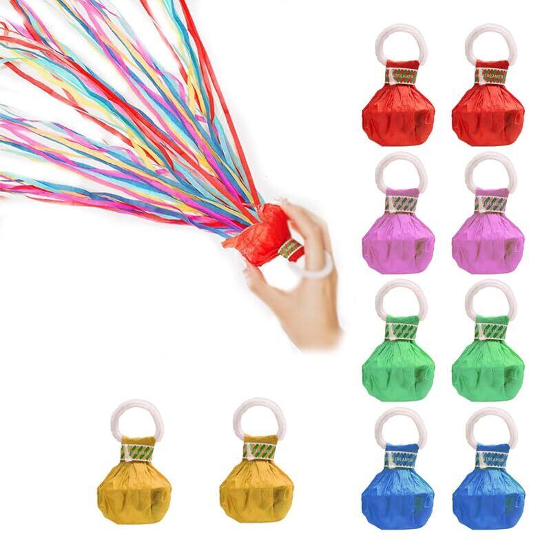 散らからないクラッカー 10個入り 5色 色はランダム カラフル 紙吹雪 紙テープ 手投げる 紙テープ 手投げストリーマー 雰囲気作り 小道具 演出 卒業 記念日 玩具 優勝 勝利 お祝い 結婚式 引っ越し用 喜び パーティー
