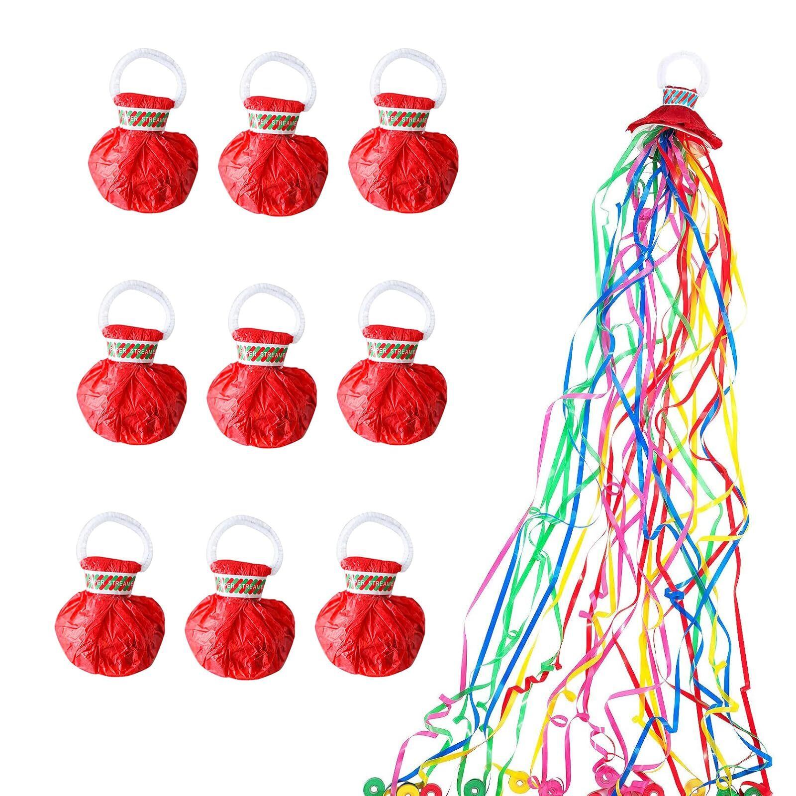 手投げストリーマー 散らからないクラッカー 手投げ紙吹雪 9個入り 紙吹雪 パーティー 小道具 結婚式 お祝い 卒業 誕生日 記念日 手投げリボン 紙吹雪 雰囲気作り 引っ越し 紙テープ 玩具 演出 優勝 勝利 (レッド)