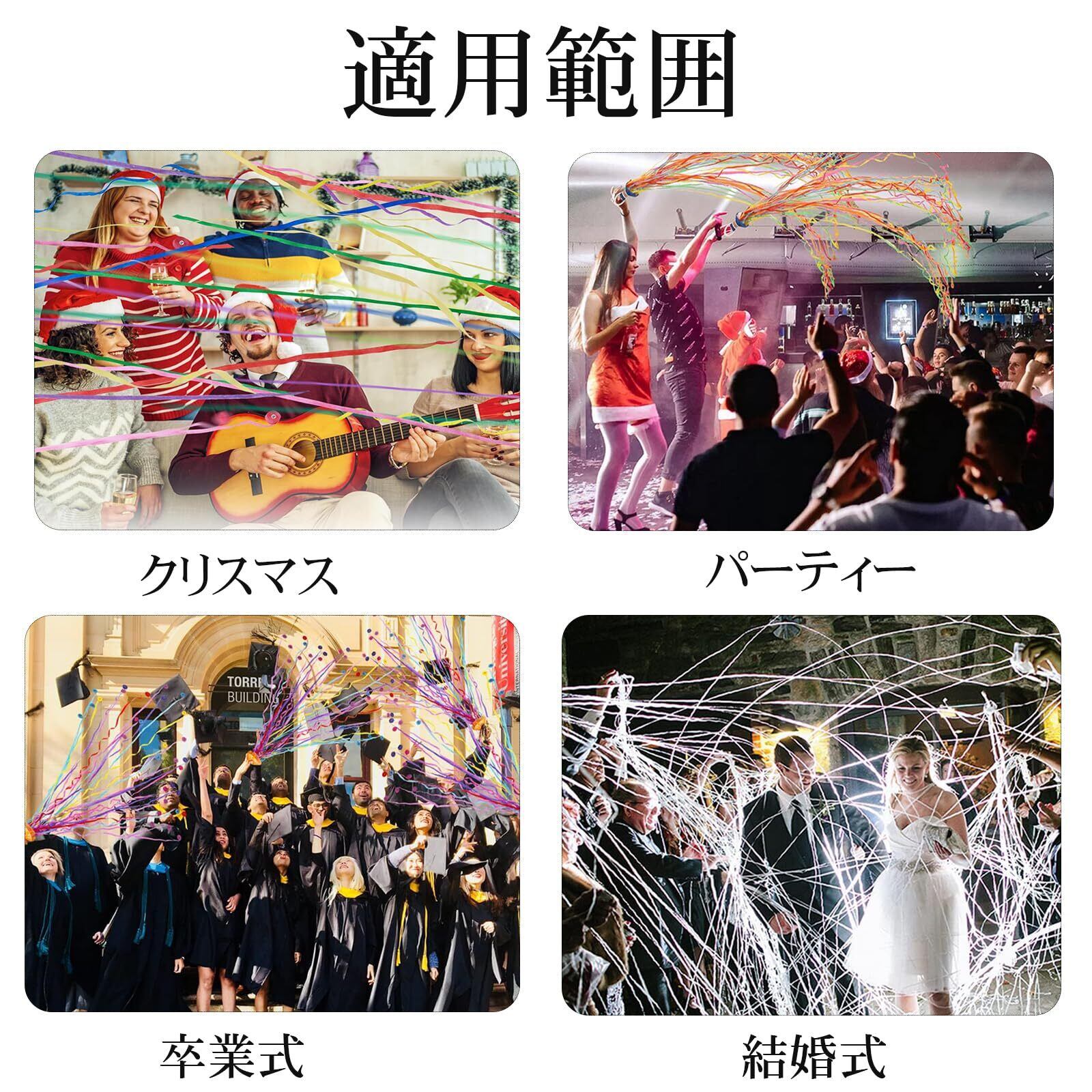 【幅広い用途】この手投げストリーマーは記念日、誕生日、結婚式、卒業式、パーティー、クリスマスなど様々な特別な日に適しています。サプライズを仕込み、みんなが笑顔になる美しい瞬間を盛り上げ、友人や家族と一緒に素晴らしい時間を過ごします。