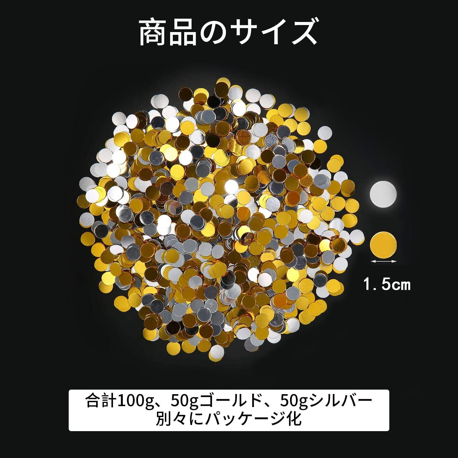 紙吹雪 パーティー 結婚式 誕生日(直径1.5cm 金50g 銀50g)ウエディング イベント お祝い ウェディング シャワー クリスマス プロポーズ 風船の飾り付け 紙ふぶき ゴールドシルバー ゴールド