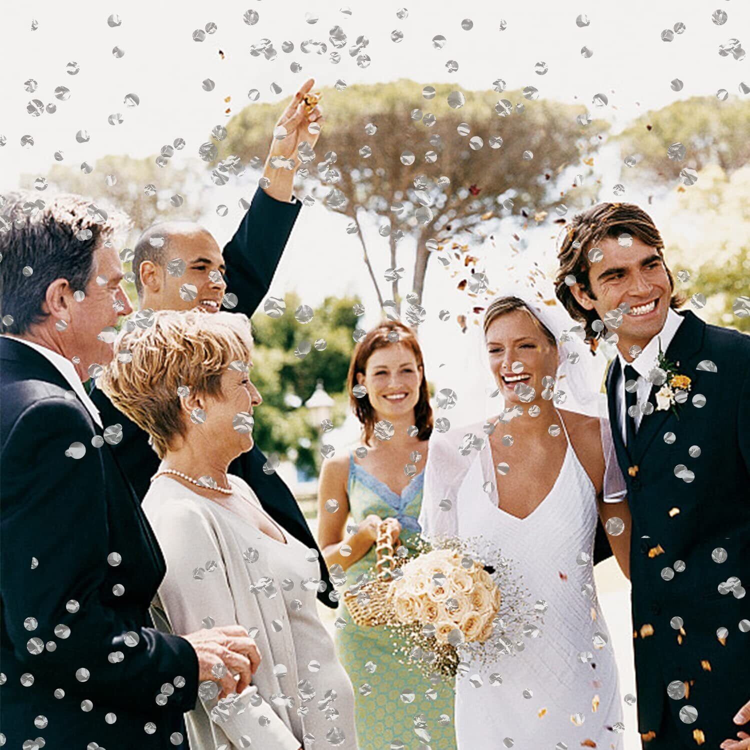 【ロマンティックシルバー】紙吹雪は一枚一枚丸いシルバーです。投げたり吹いたりして使うのはとてもロマンティックで特別です。きらめくシルバーが結婚式、パーティー、その他のお祭りを飾り、喜びと雰囲気を加えます。結婚式、ブライダルギフトパーティー、シングルパーティー、誕生日パーティー、ベビーパーティー、新年会、その他のテーマパーティーに適しています。きらめく明るい色は、よりお祭りの雰囲気を盛り上げることができます。