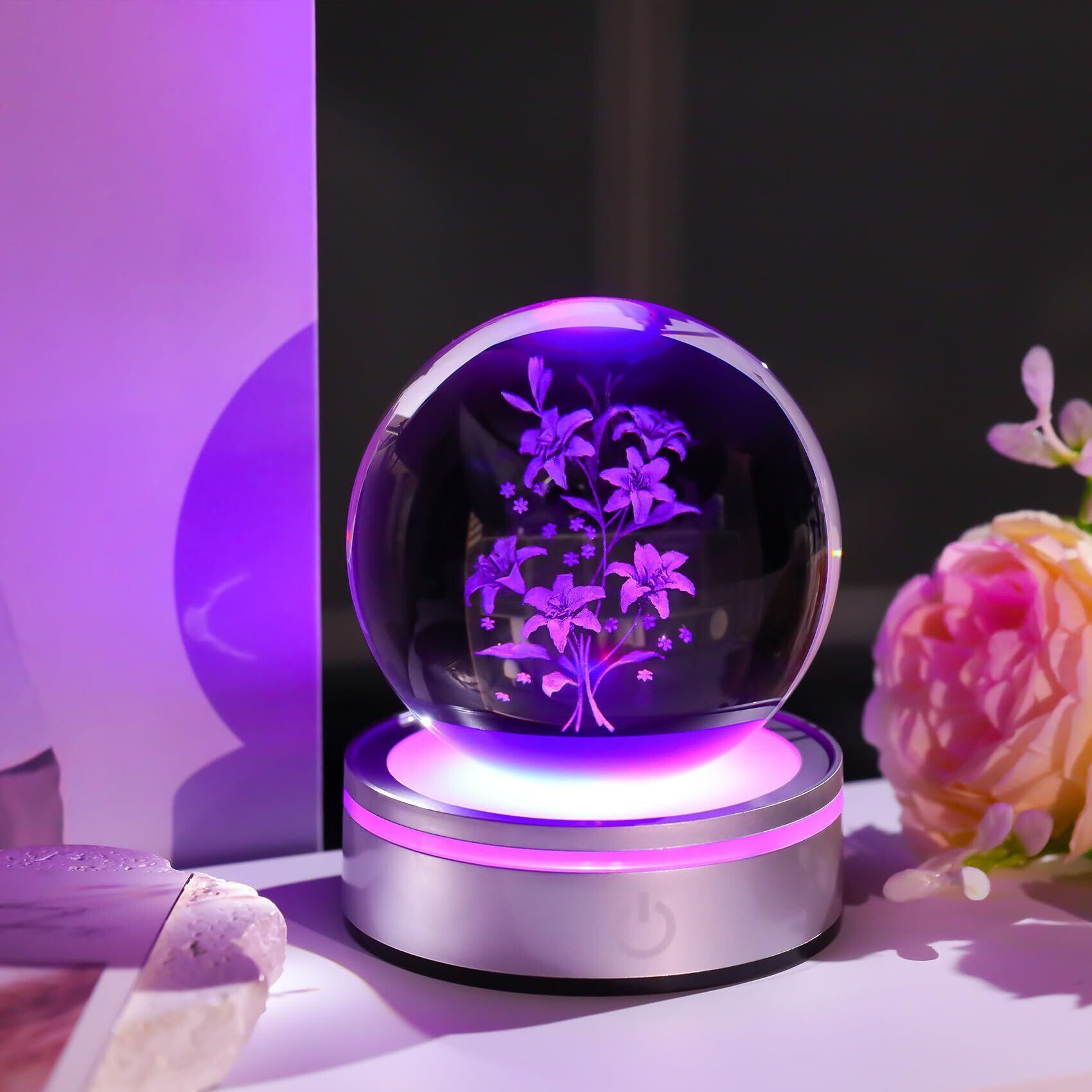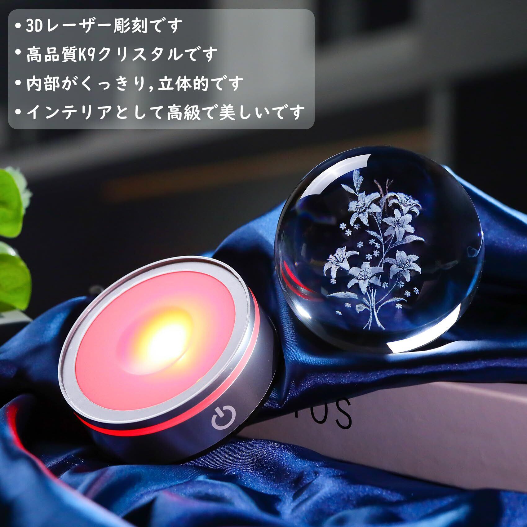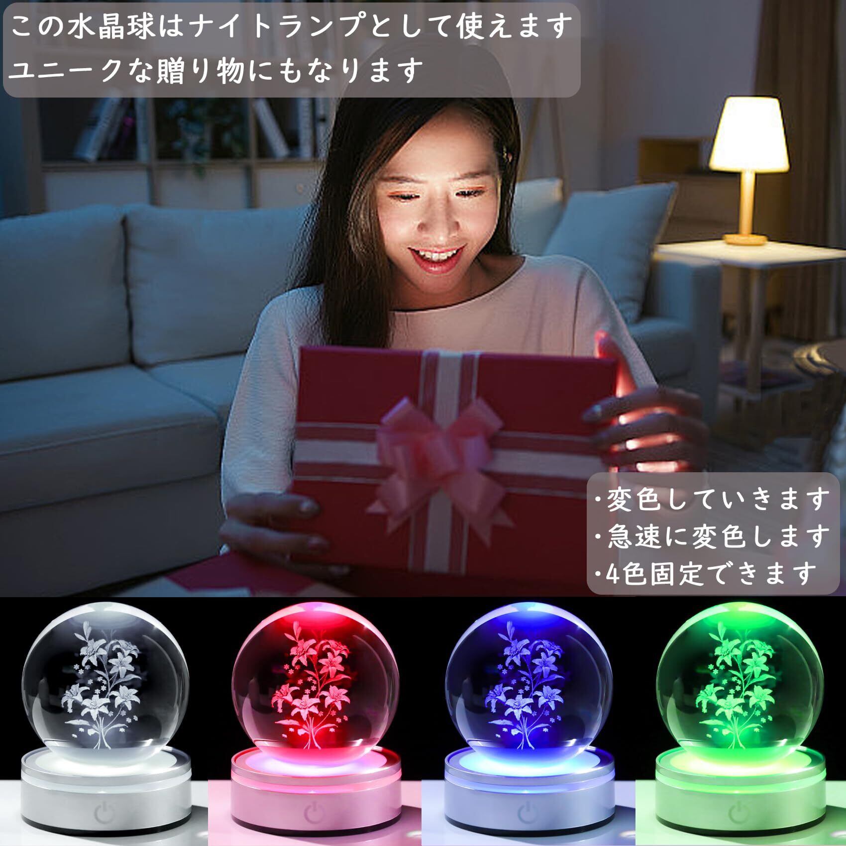 クリスタルフラワー ユリ ガラス細工 枯れない花 LEDライト付き 置物 オブジェ 母の日 誕生日プレゼント 女性 ギフト インテリア 雰囲気照明 80mm クリスタルボール