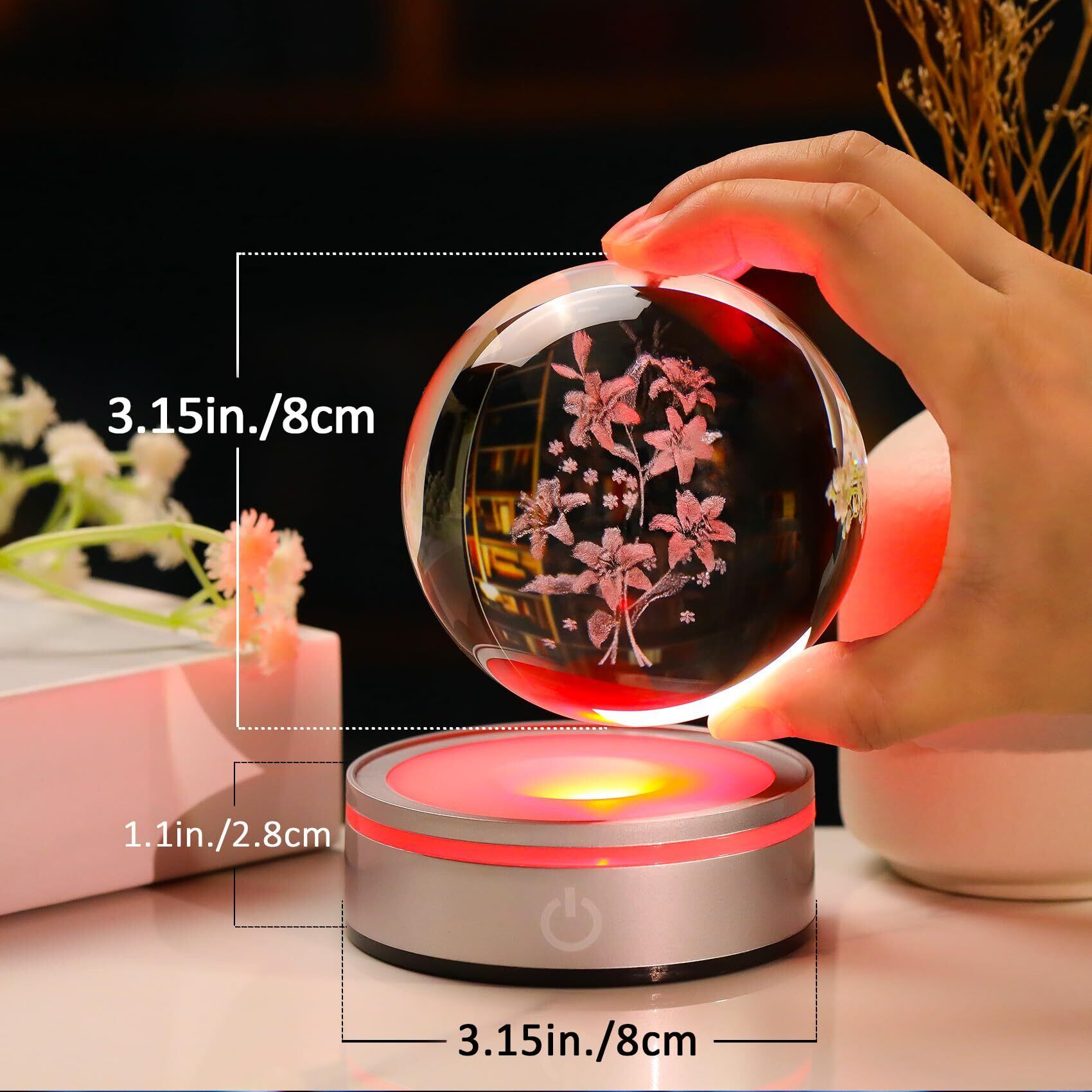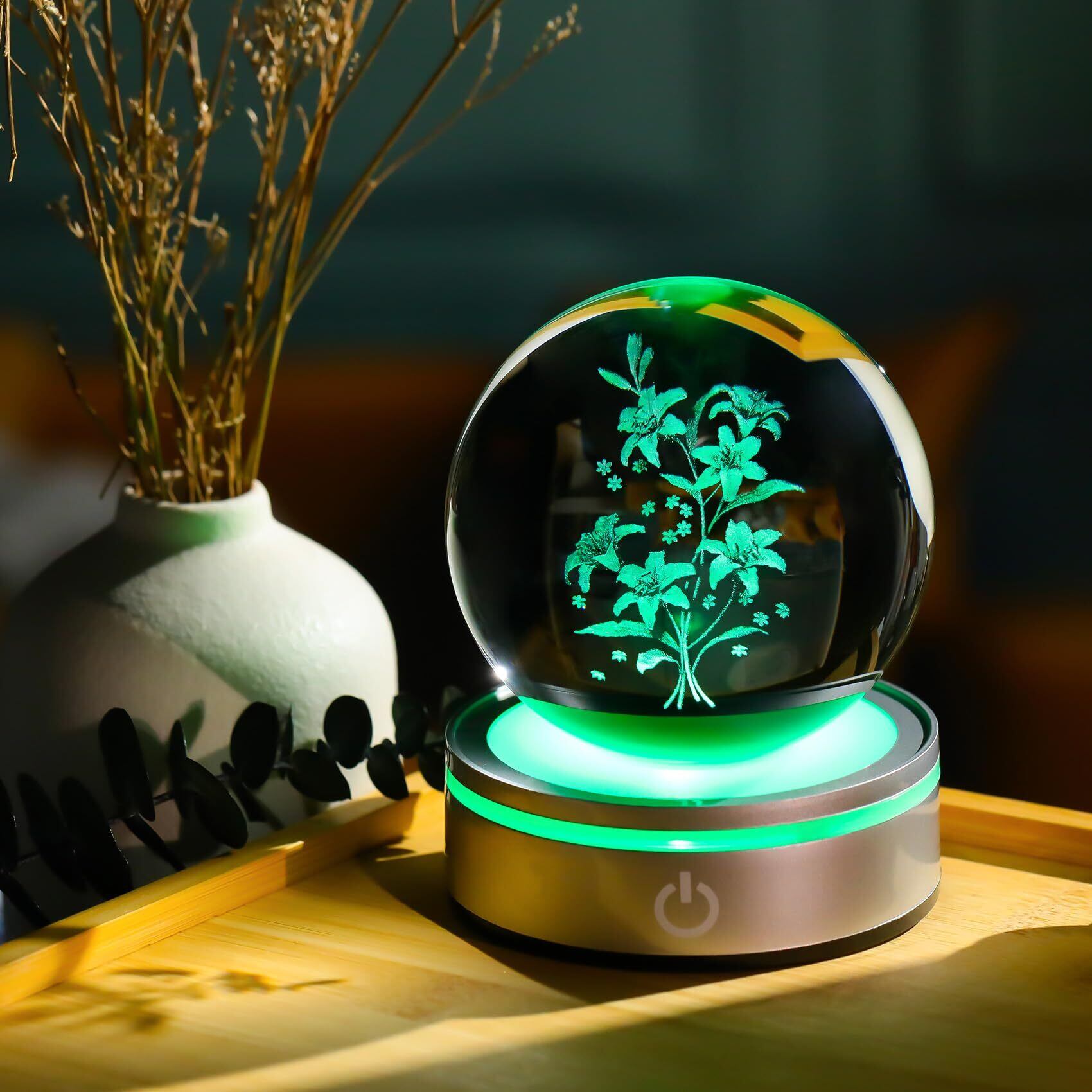 【美しい3D内雕とクリアな水晶ガラス】球体内部にユリの花が繊細に彫刻されており、360度どの角度からでも鑑賞できます。高品質のクリスタルガラス素材を使用しているため、透明度が高く、光を当てるとキラキラと輝き、お部屋の雰囲気を一層おしゃれにします。