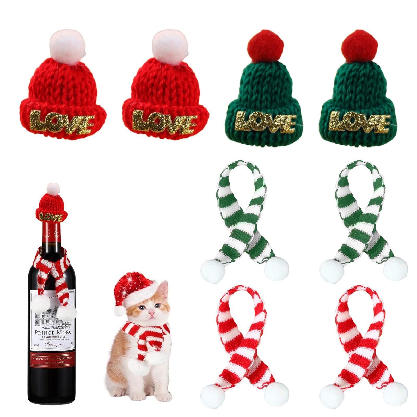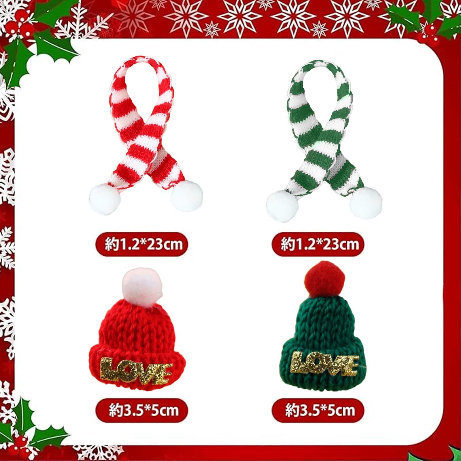 サプライズギフト:家族の写真、ペット、ワインボトルなどを飾るのに最適な8個入りの(ミニサンタ&ミニクリスマススカーフ帽子)。愛する人を驚かせる素敵なクリスマスギフトです。