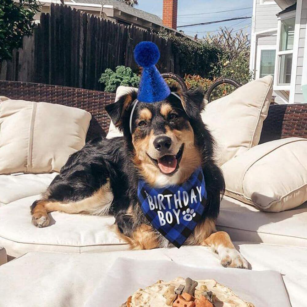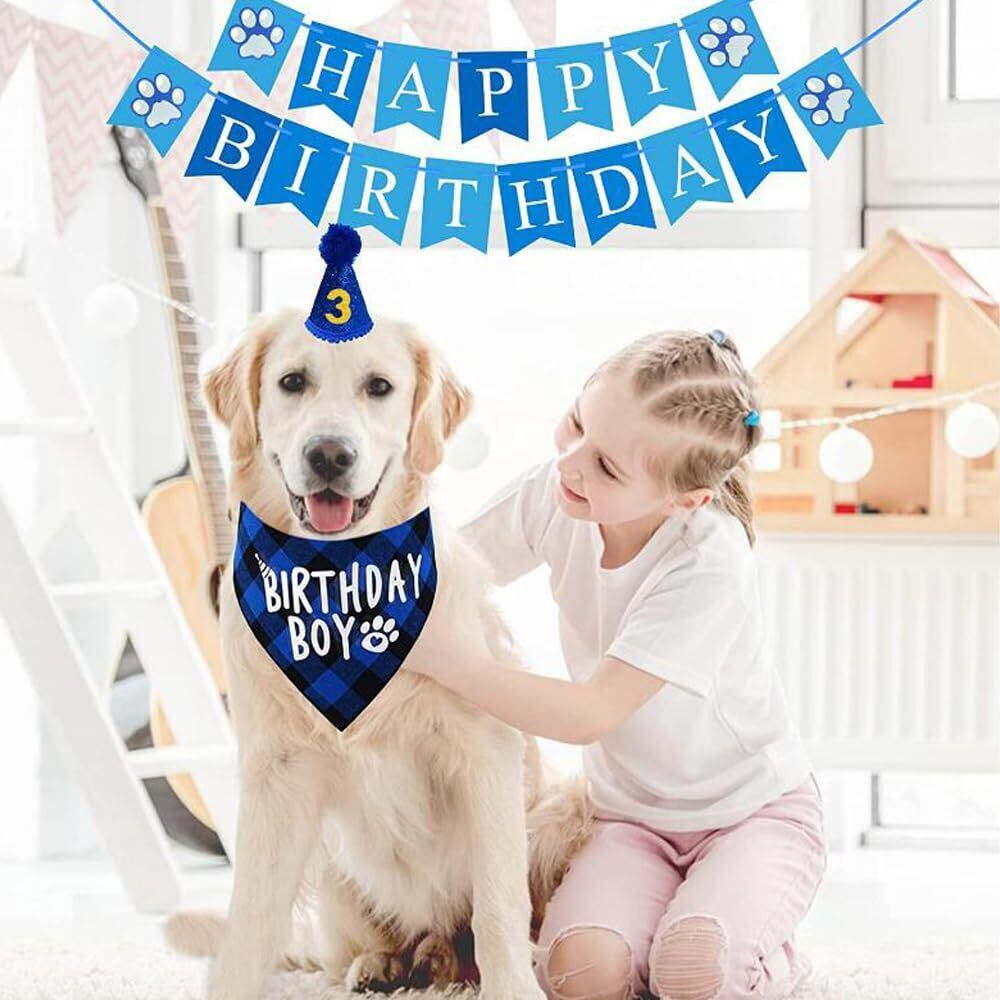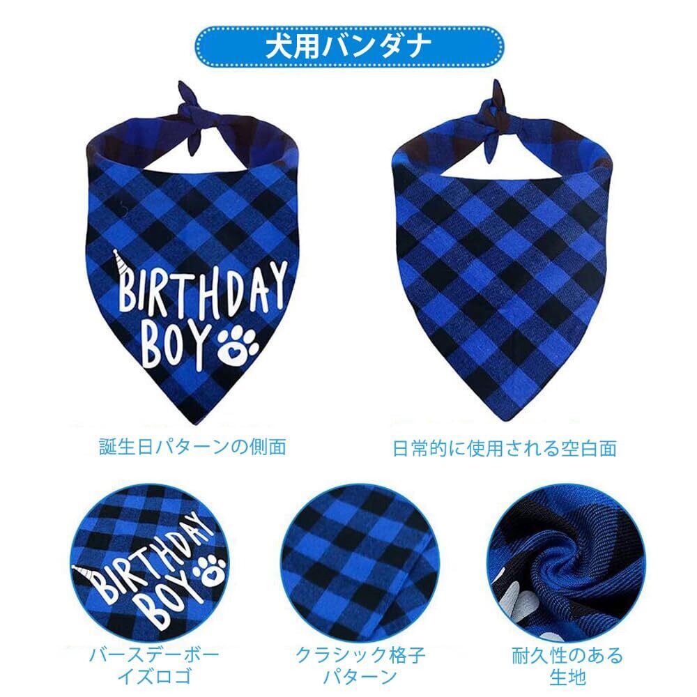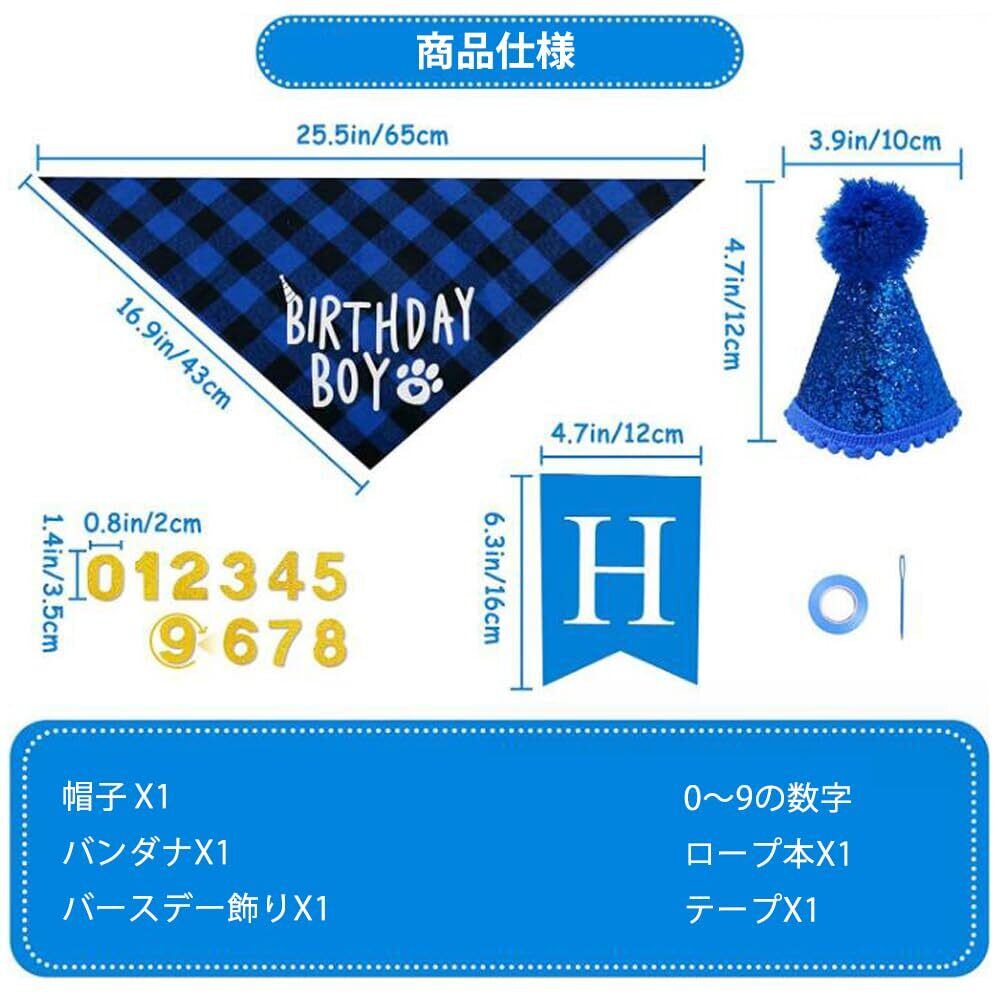 GOODCHI 犬 誕生日 帽子 ペット 誕生日 飾り付け 犬 猫 誕生日帽子 バンダナ バナー ペットグッズ おしゃれ 誕生日 記念日 パーティー飾り (ブルー)