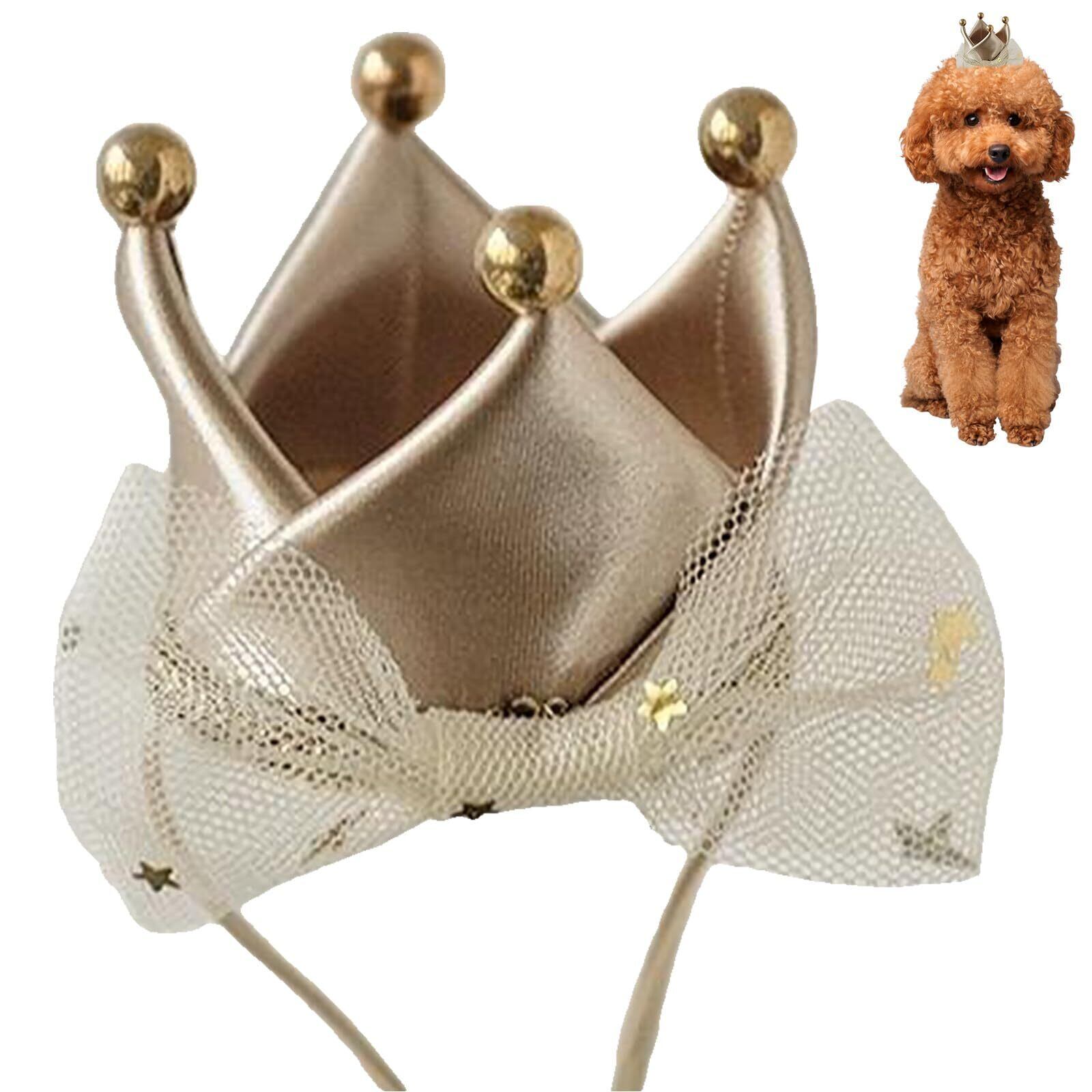 犬 バースデーハット 飾り付け 猫用 誕生日帽子 かぶりもの ペットバースデー パーティー飾りグッズ 誕生日グッズ ミニバースデイクラウン 写真撮影 (ゴールド)