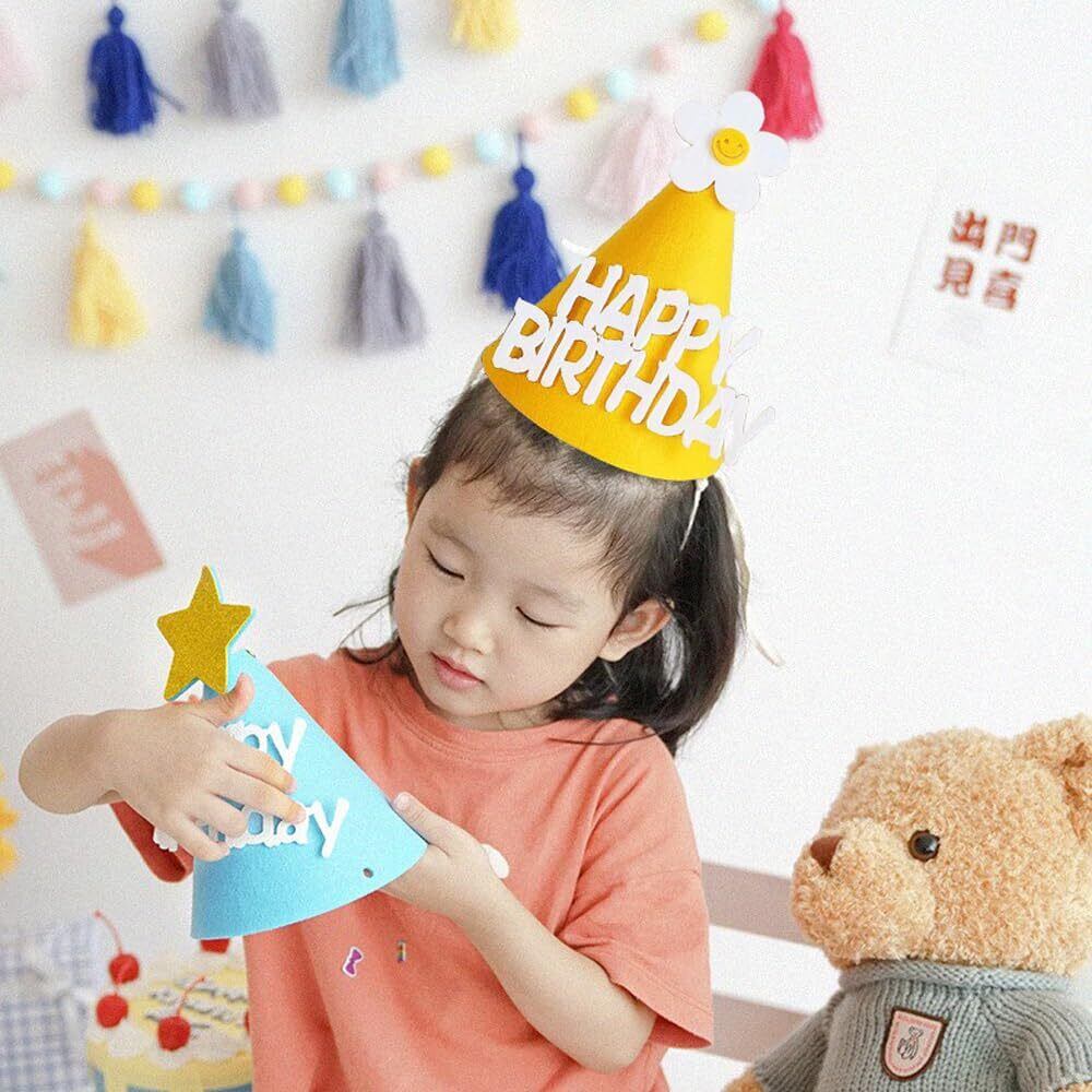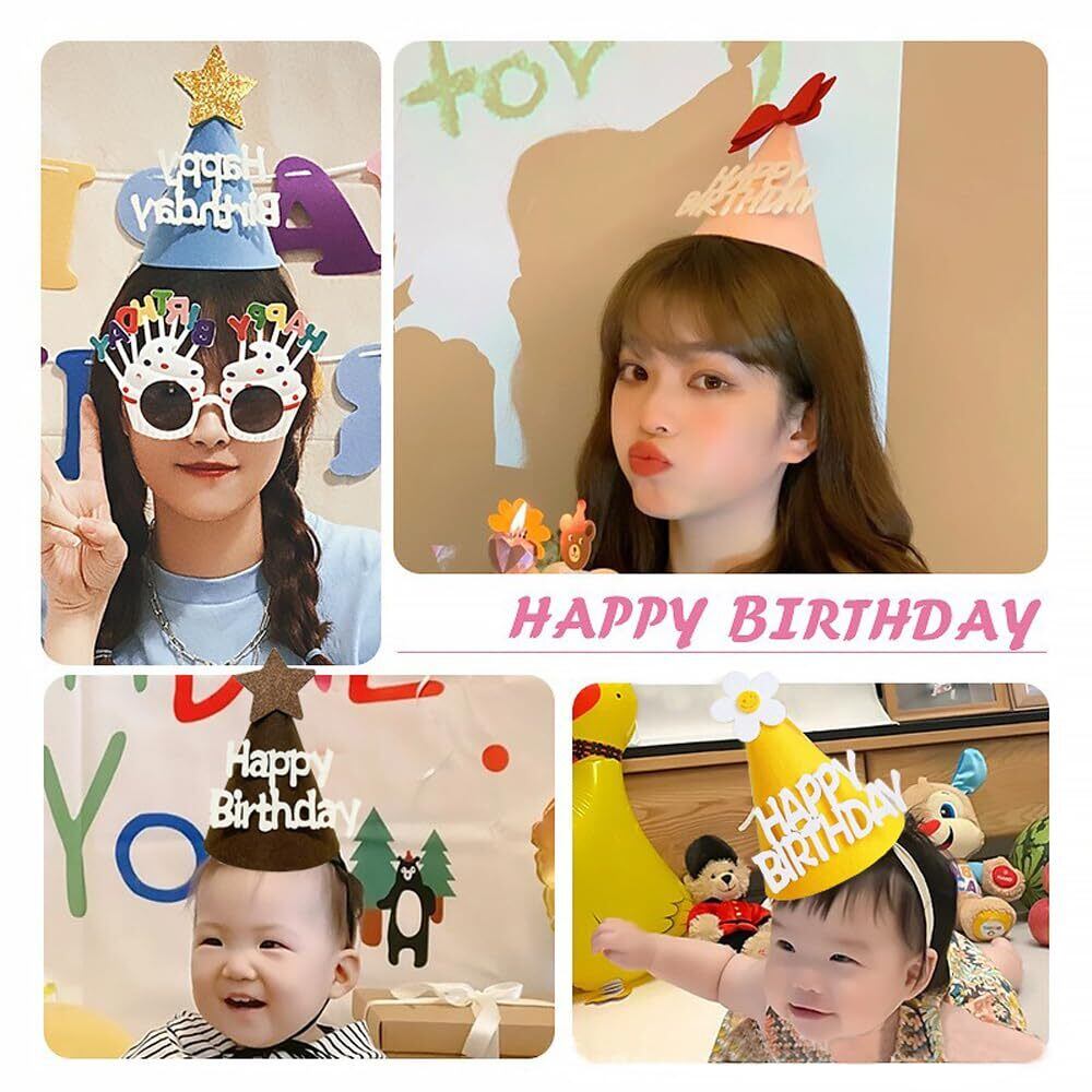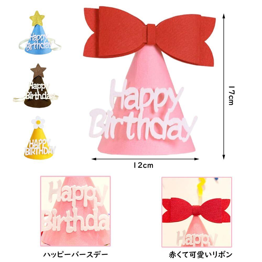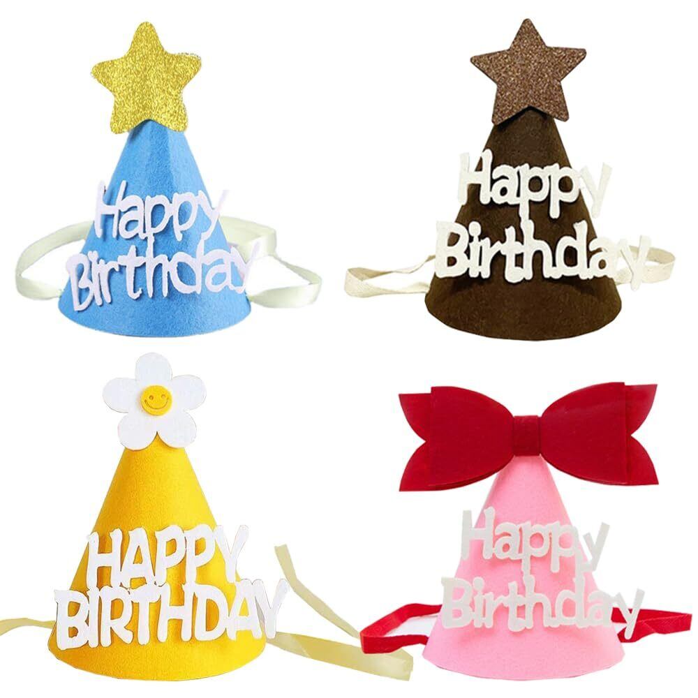 [サムコス] バースデーハット 4個セット 誕生日 三角帽子 誕生日 お祝い 飾り 写真道具 バースデー パーティー小物 コーンハット Happy Birthday 子供 大人兼用