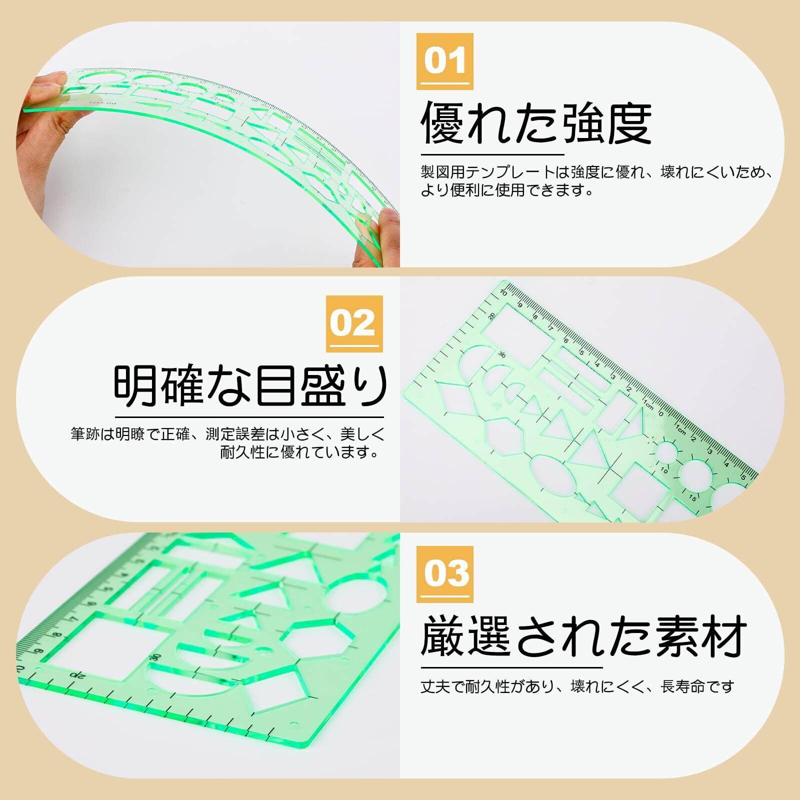 高品質の素材:テンプレート 定規 製図用すべて高品質の素材で作られており、水で洗って繰り返し使用できます。