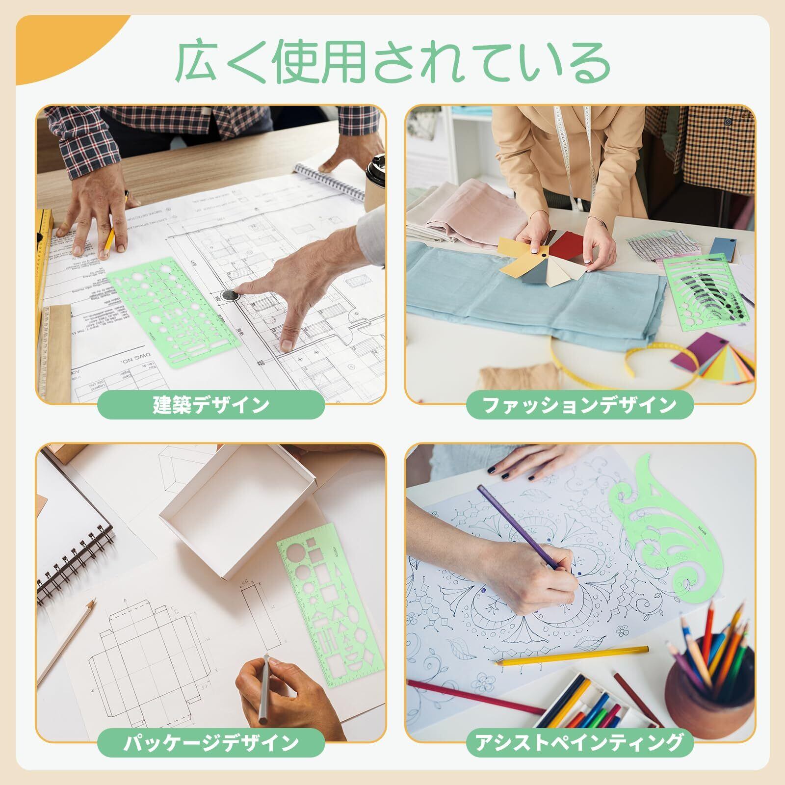 異なるサイズ: テンプレートの長さは17.8~25cmです。テンプレート 定規幅は9.4~14.7cmまで様々です。