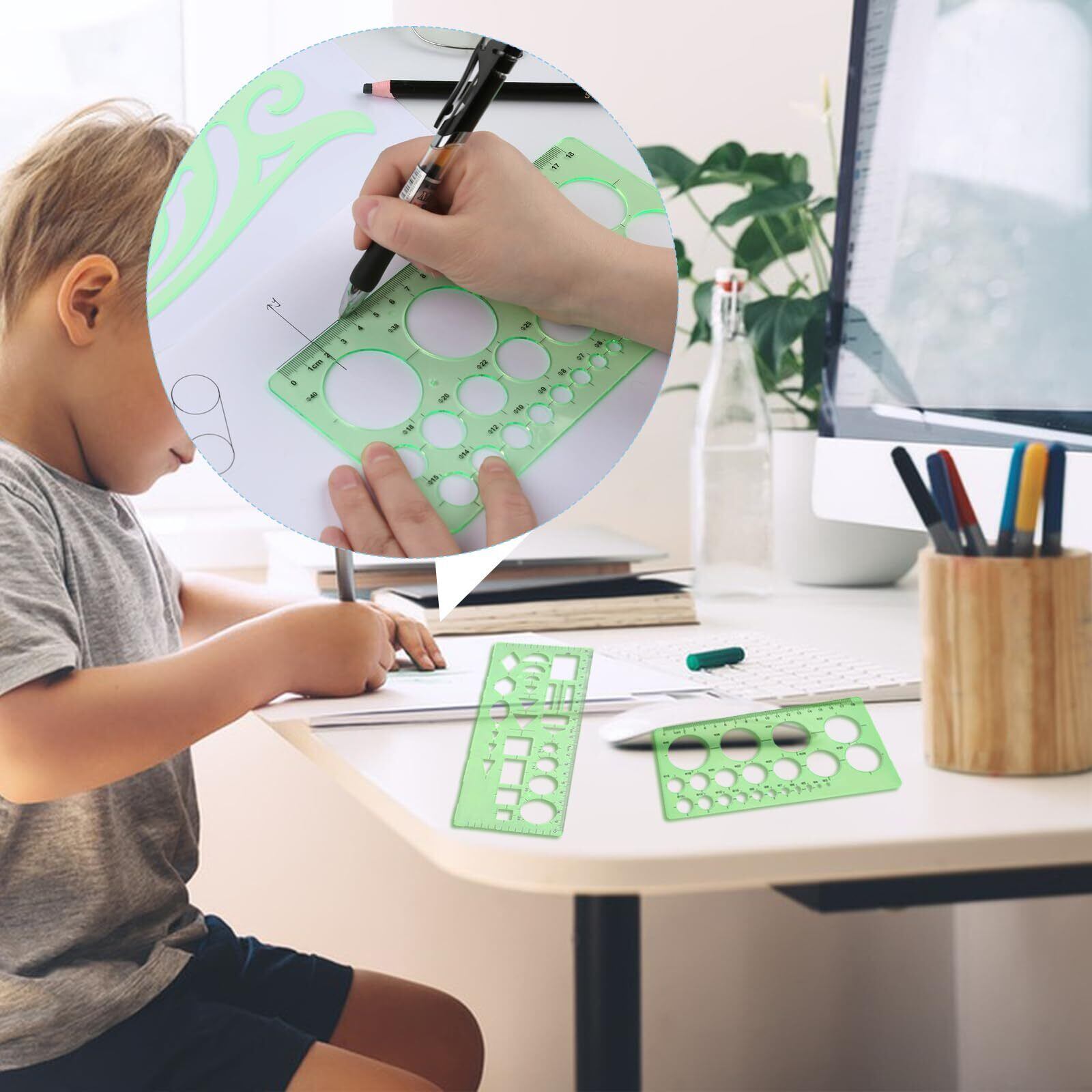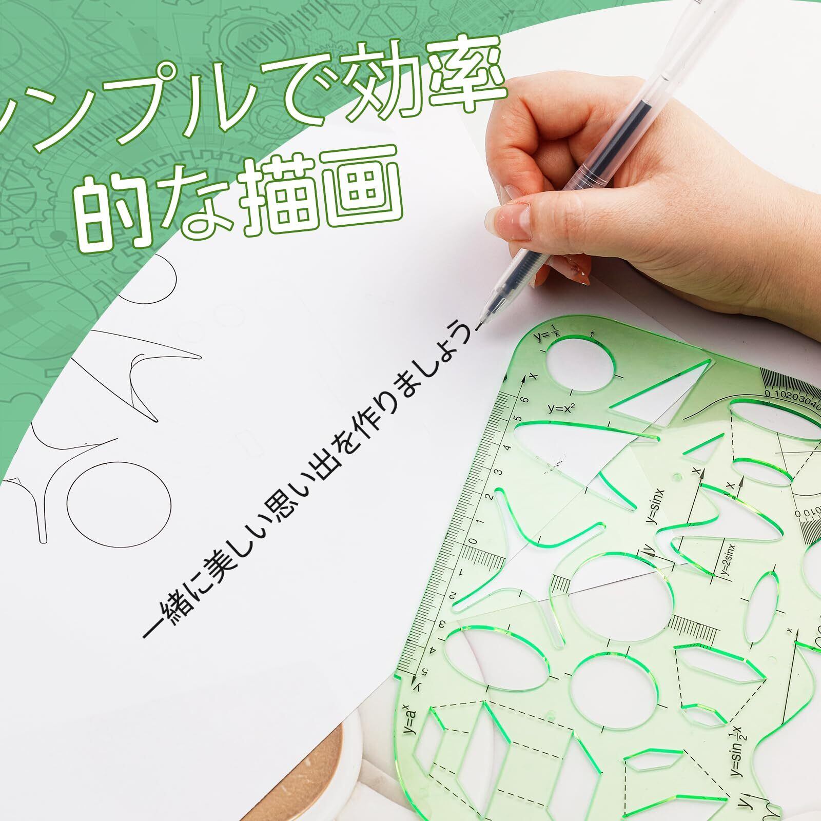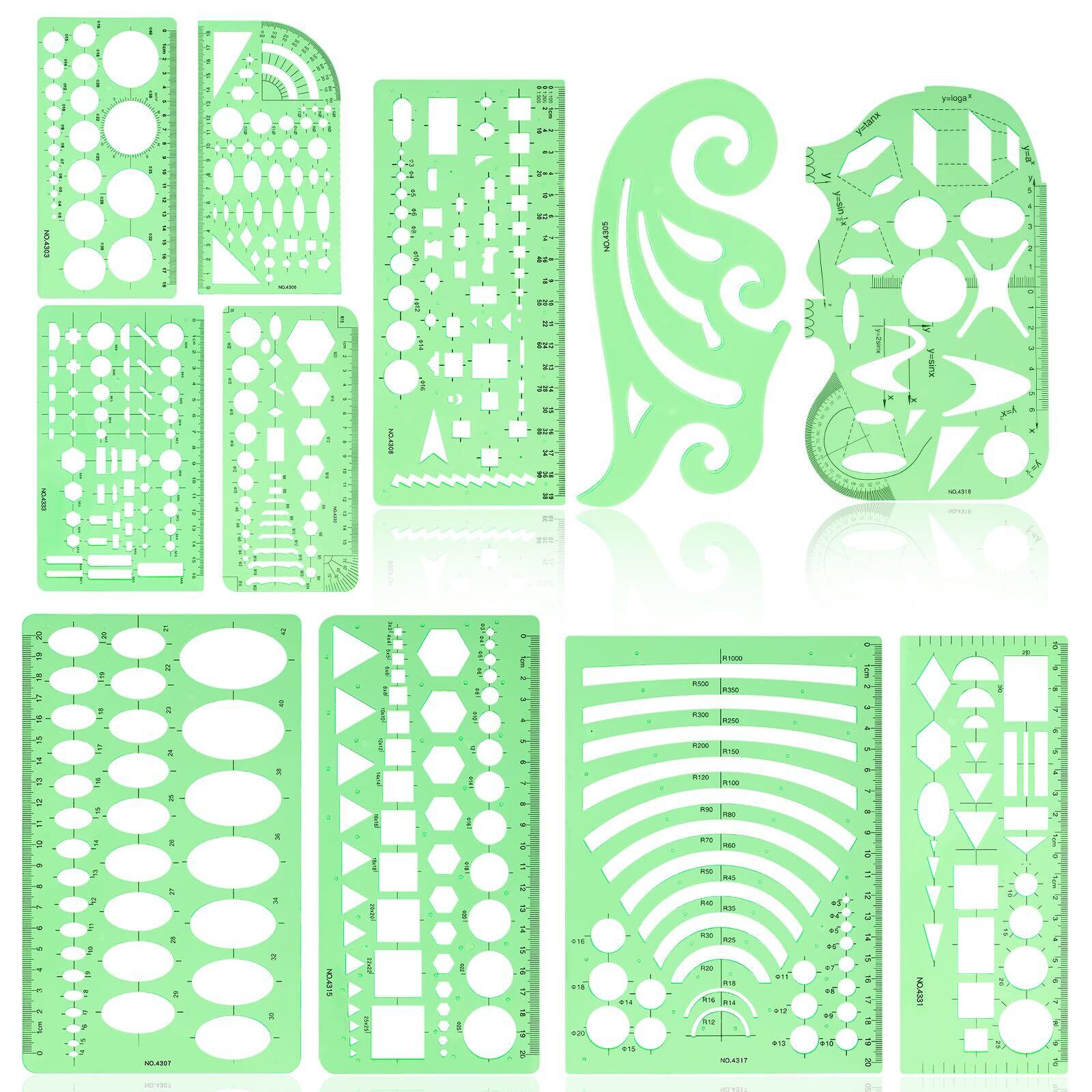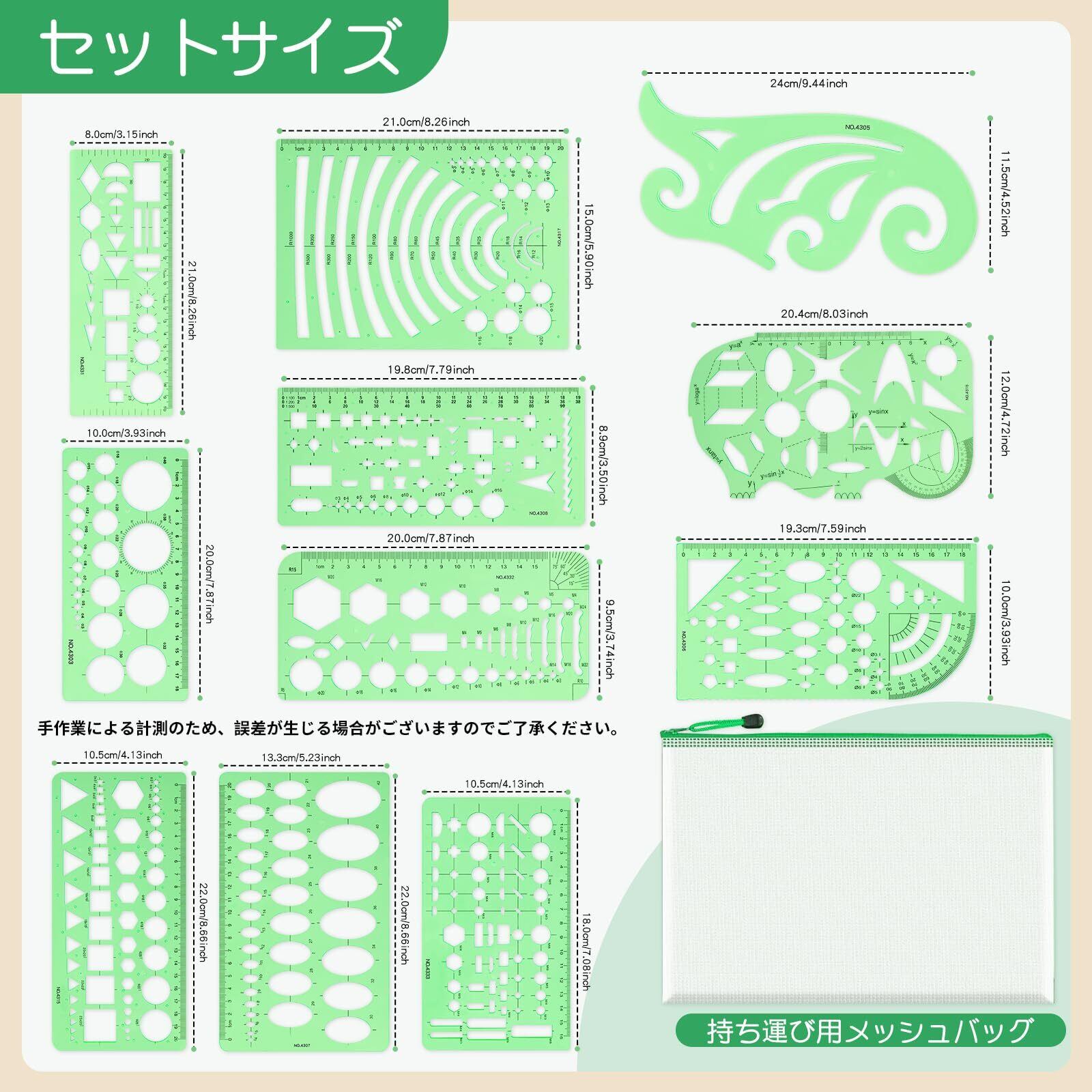 内容: 図面テンプレート11枚セット 円定規高品質プラスチック 目に優しいグリーン。このキットは大人向けです。