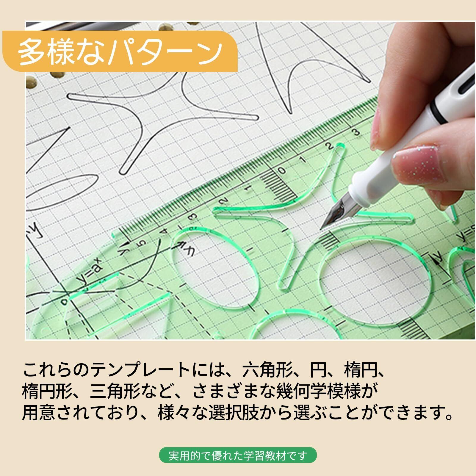様々なパターン: 製図 テンプレート これらのテンプレートは、六角形、円形、楕円形、楕円形、三角形などの様々な選択肢に対して異なる幾何学的パターンを持ち、実用的で優れた学習補助ツールです。