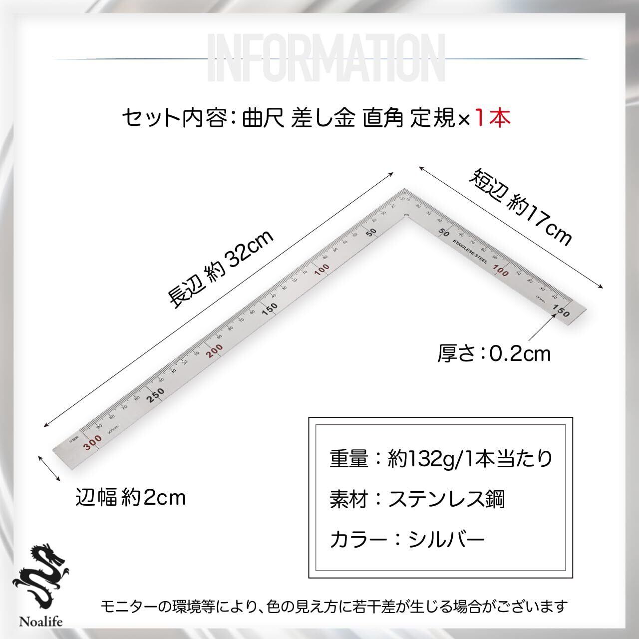 【商品仕様】セット内容:曲尺 差し金 直角 定規 ×1本 サイズ:長辺 約32cm 短辺 約17cm 辺幅 約2cm 厚さ:0.2cm 重量:約132g/1本当たり 素材:ステンレス鋼 カラー:シルバー ※モニターの環境等により、色の見え方に若干差が生じる場合がございます。