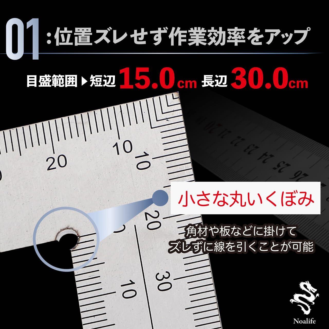 曲尺 矩尺 指矩 直角 l字 定規 厚手 広巾 差し金 差金 工具 曲尺定規 スコヤ ステンレス 大工 カーペンター DIY 15cm 30cm (シルバー 1本)