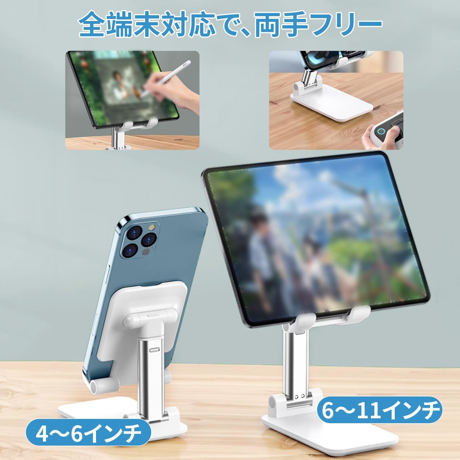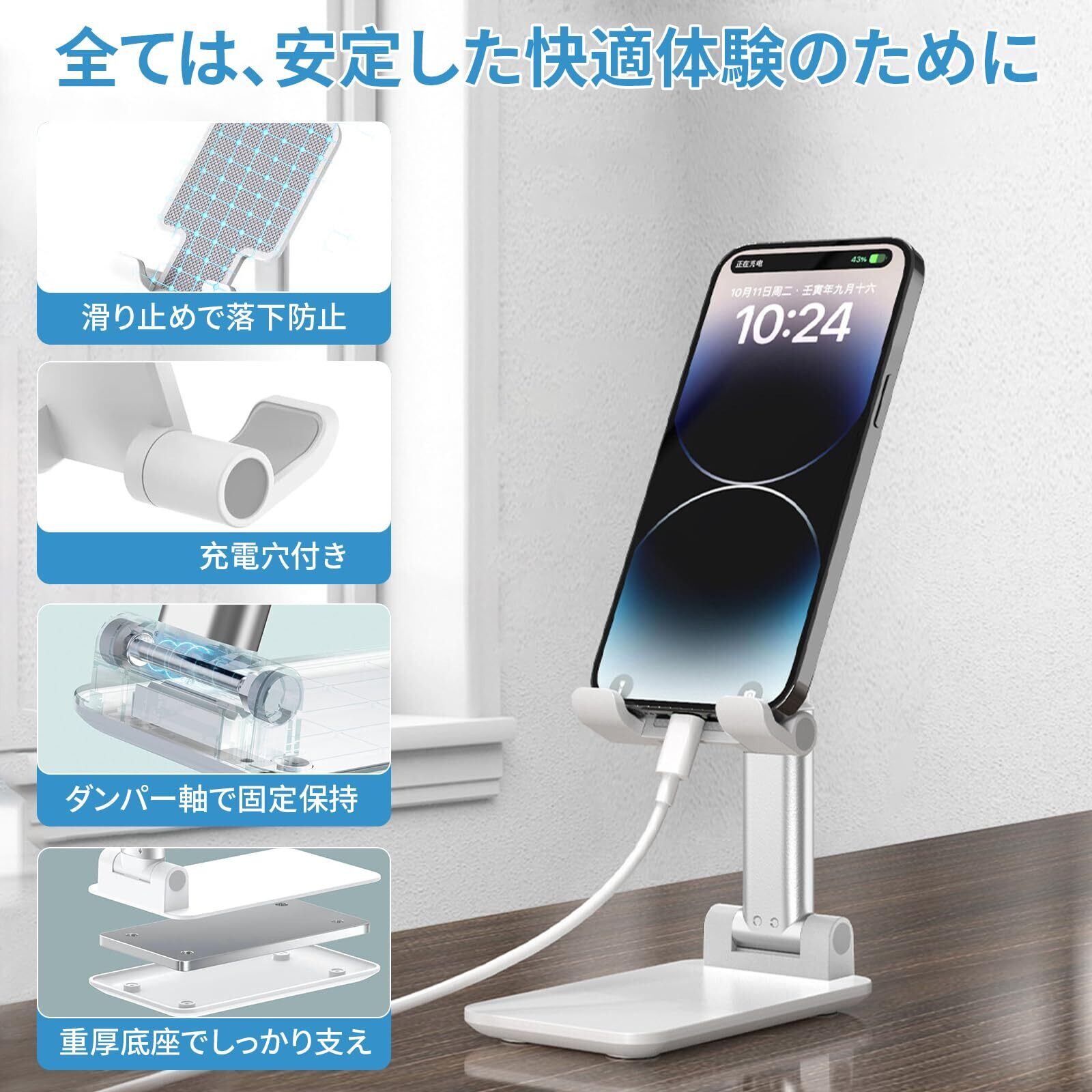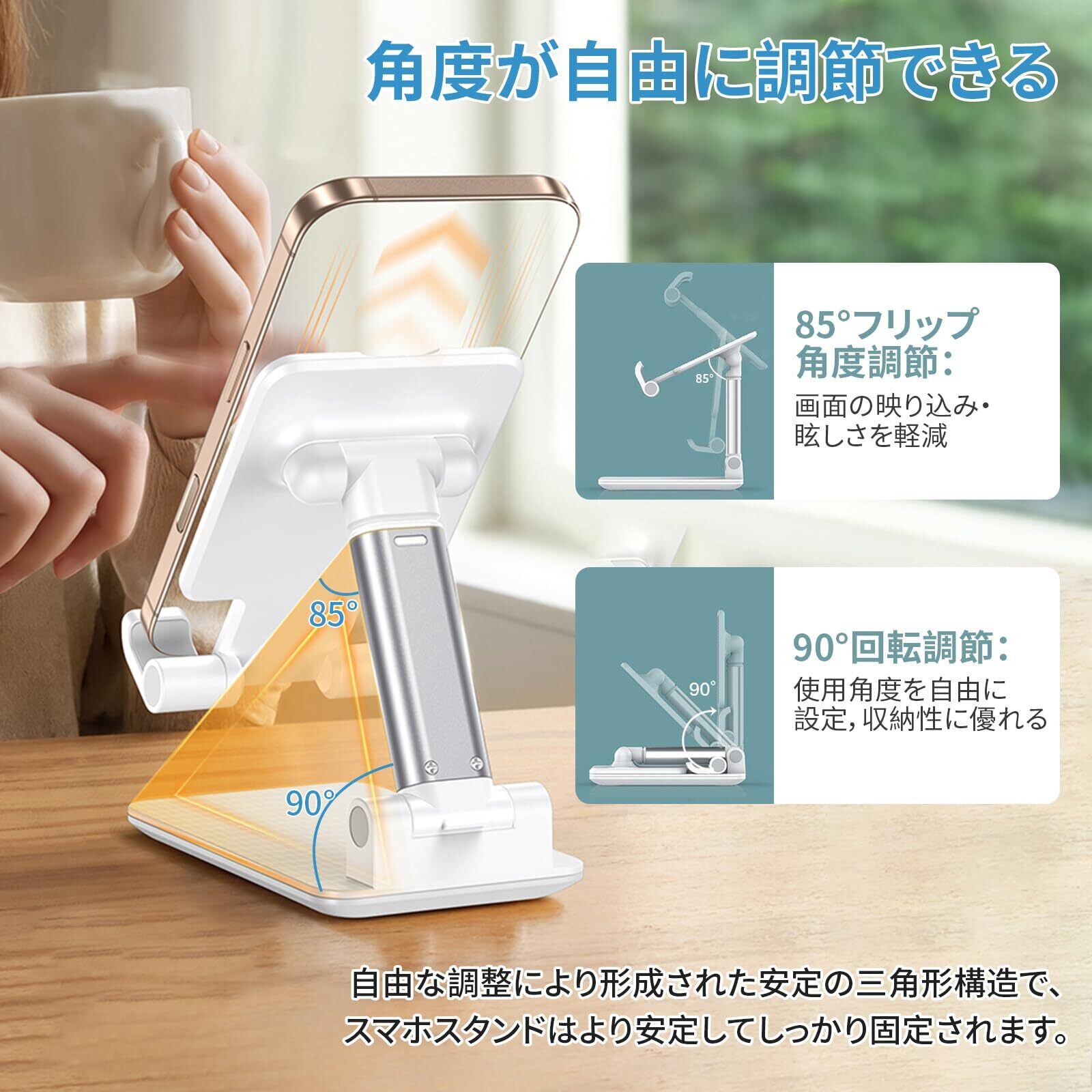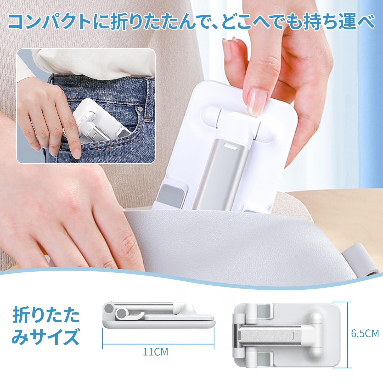 スマホスタンド 折り畳み 卓上 角度調節 高さ調節可能 滑り止め 厚底デザイン 安定性 折りたたみ コンパクト タブレット iPhoneスマホ 対応 携帯スタンド 動画鑑賞 ビデオ通話 生放送 Web会議などに活用 (ホワイト)