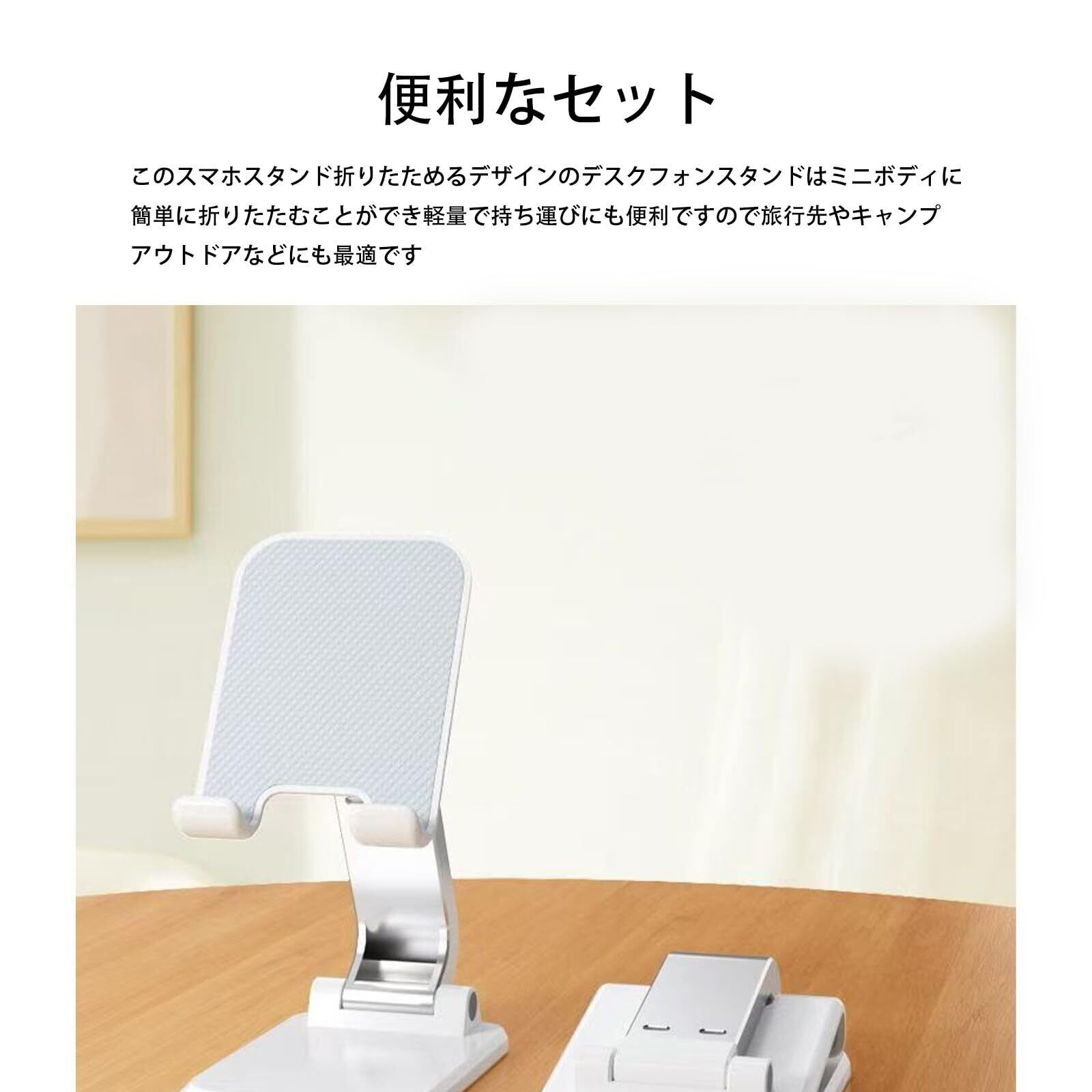 4.便利なセット:このスマホスタンド折りたためるデザインのデスクフォンスタンドは、ミニボディに簡単に折りたたむことができ。軽量で持ち運びにも便利ですので旅行先やキャンプ、アウトドアなどにも最適です。