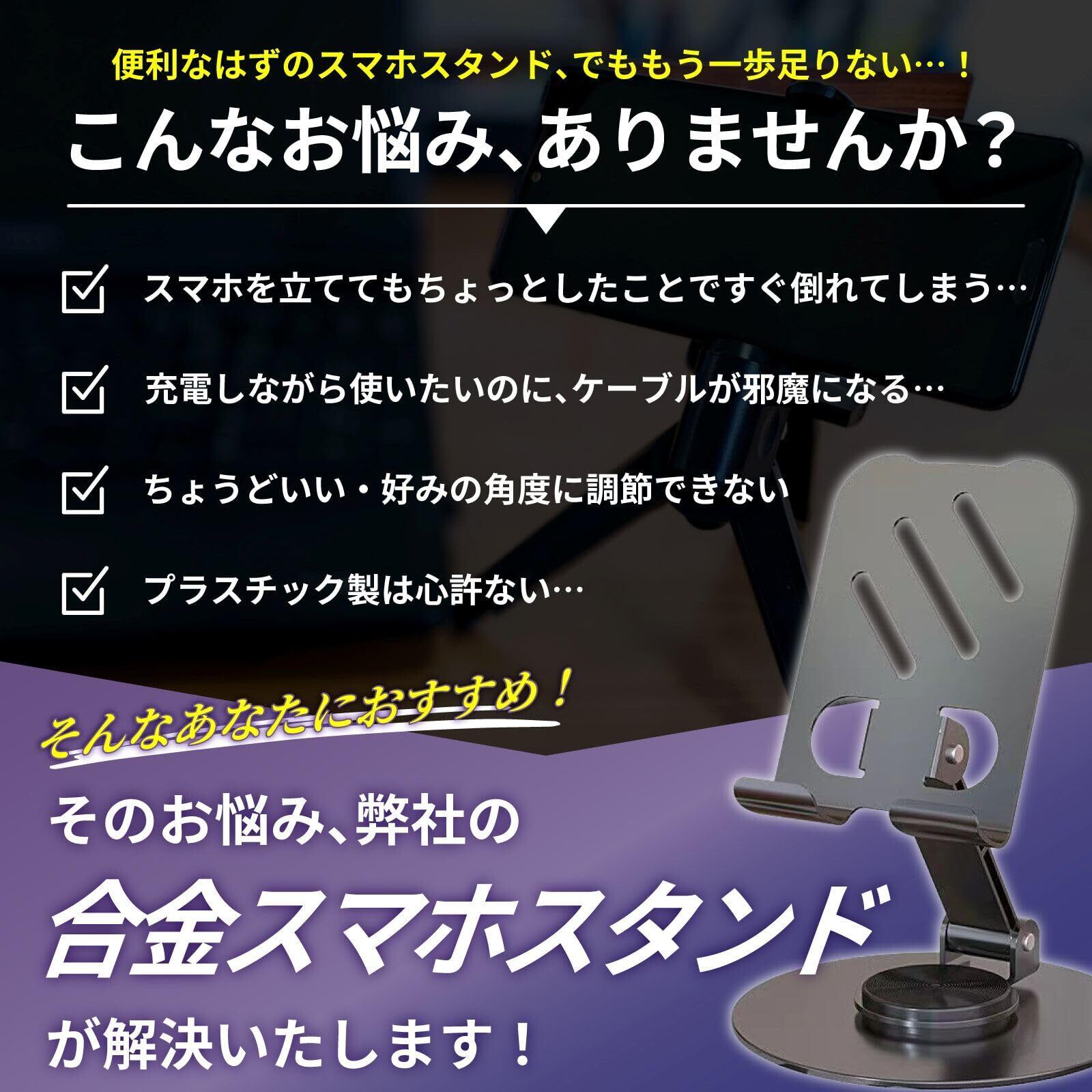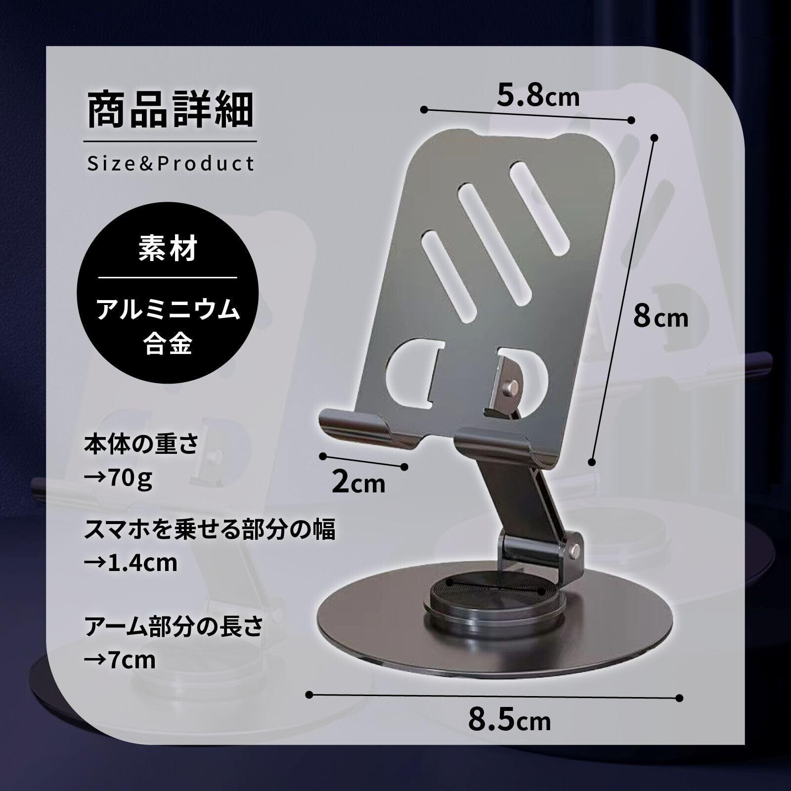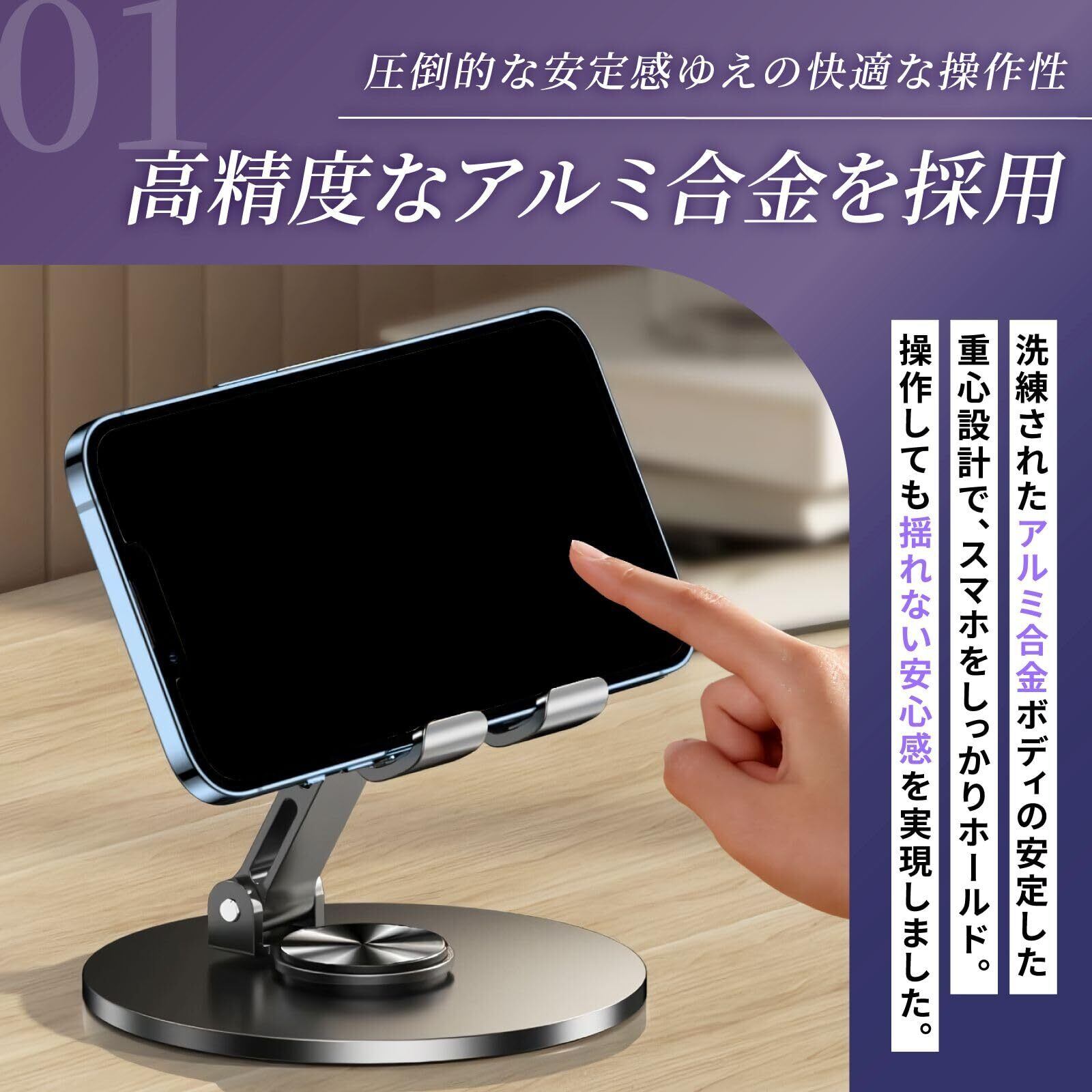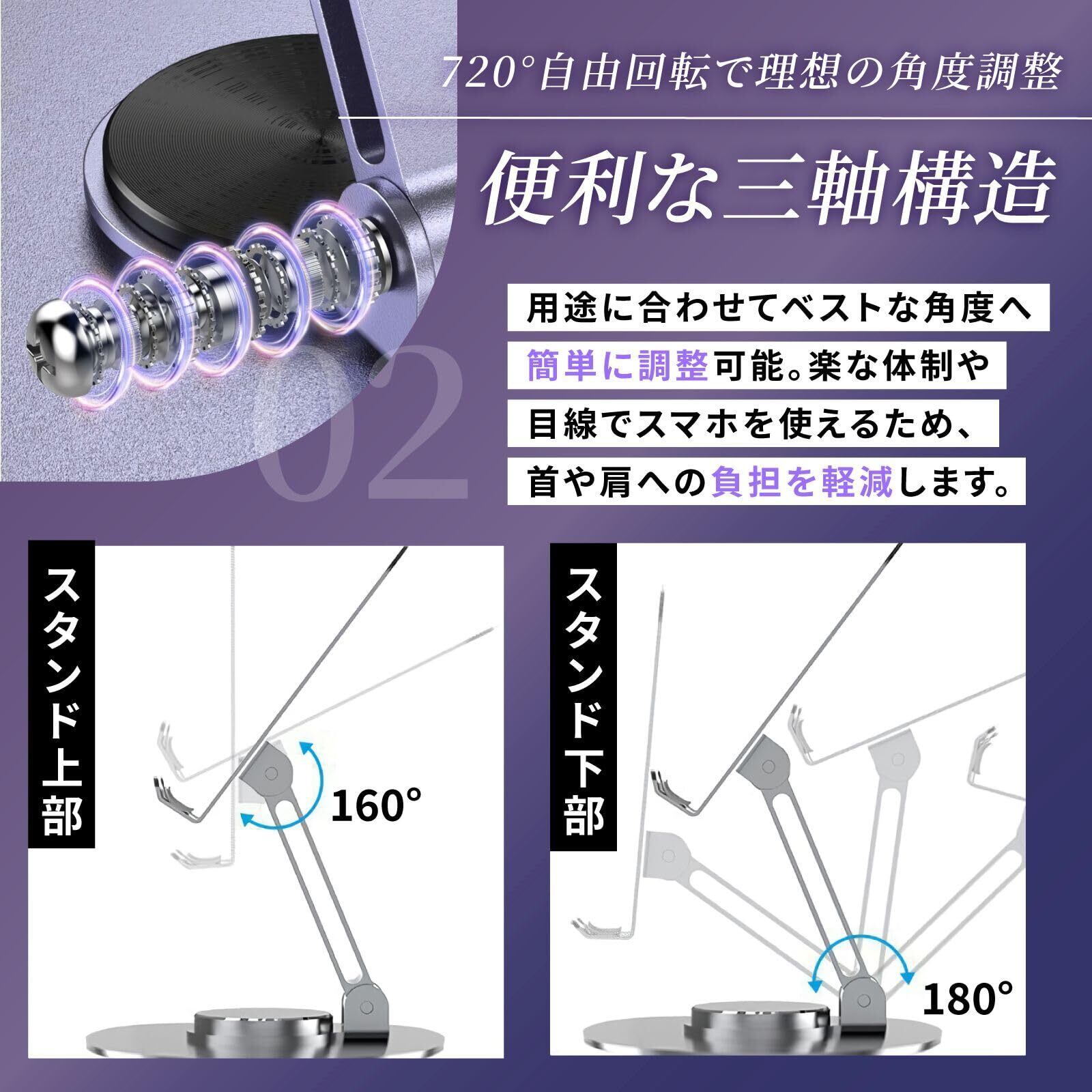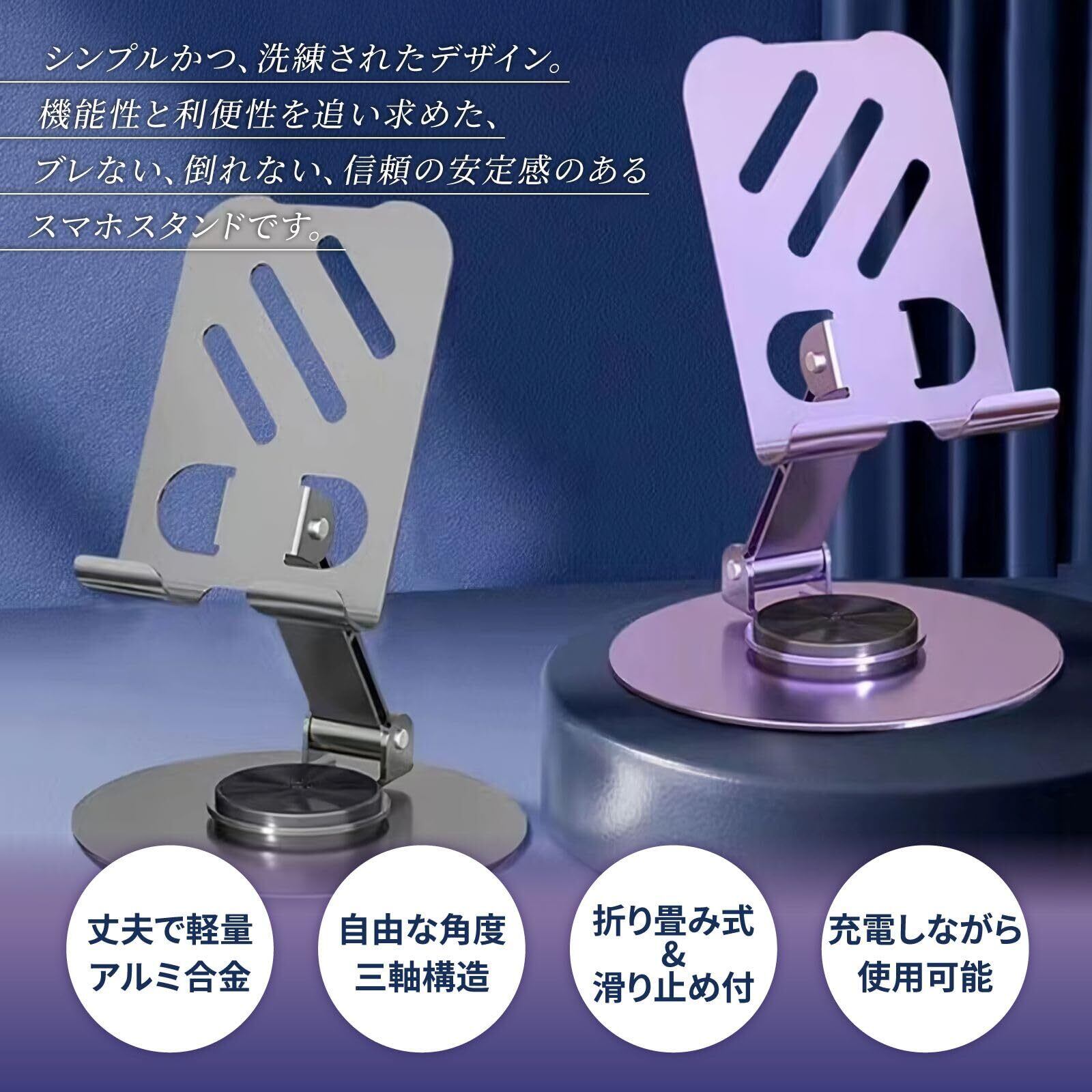 スマホスタンド 卓上 アルミ合金製 360度回転 折りたたみ式 高さ角度調整可能 スマホホルダー 携帯スタンド iPhone Android対応 伸縮 コンパクト収納 パープル