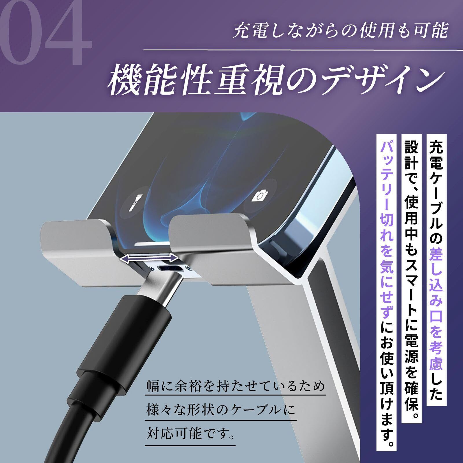 折りたたみ式で持ち運びや収納にも便利なスマホスタンド。カバンやポーチにもすっきり収まるコンパクト設計で、外出先やカフェ、出張時にもスマートに活躍します。底面とホルダー部分には滑り止めを装備し、どんな素材の机でもしっかり安定。さらに、充電ケーブルを差したままでも使用できる開口デザインを採用。見た目の美しさと機能性を両立し、日常のあらゆるシーンで上質な快適さを提供します。