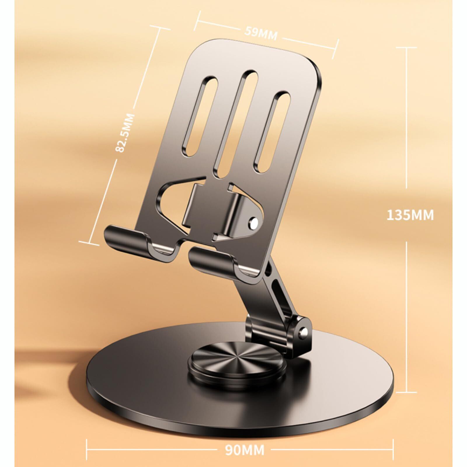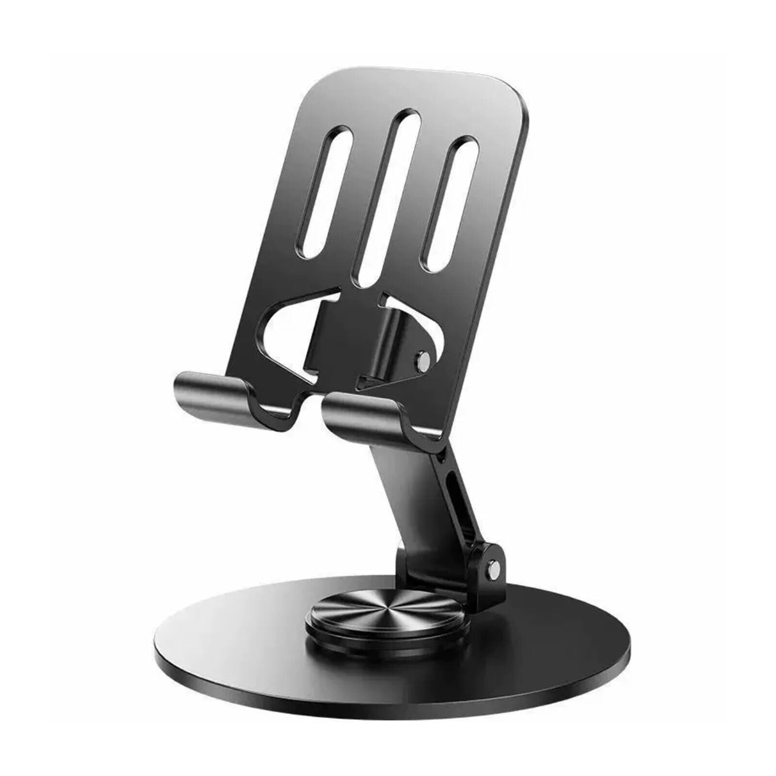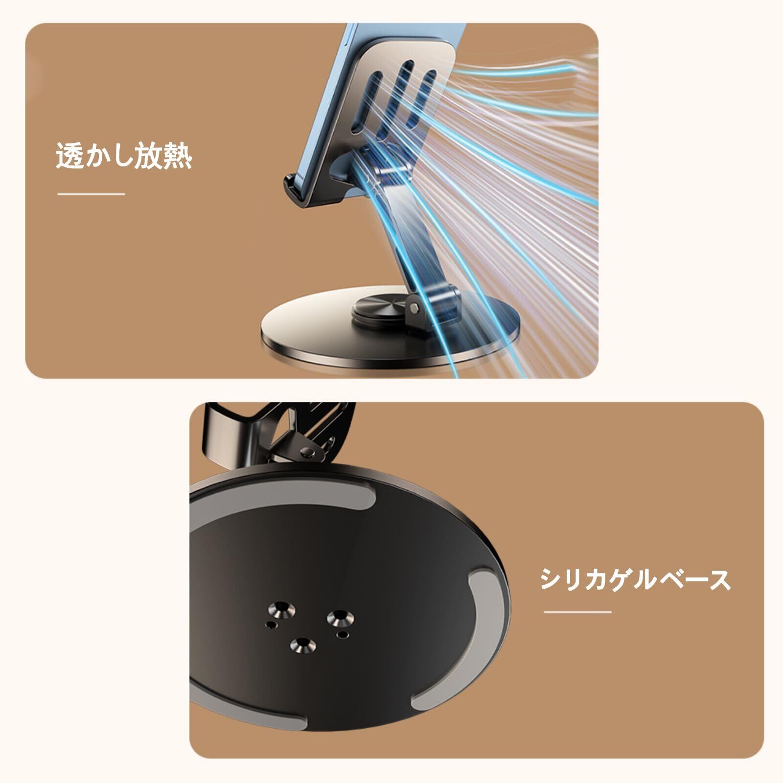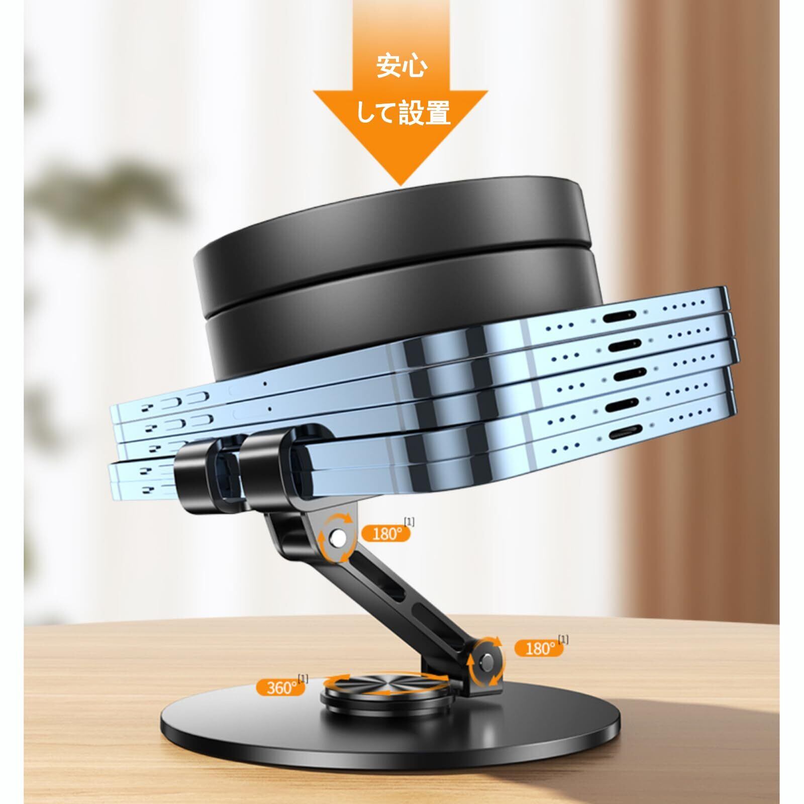 スマホスタンド 卓上 金属製 ブラック 360°調整可能 折りたたみ式 軽量アルミ合金 滑り止めシリコンパッド タブレット対応 広範囲互換性 携帯スタンド 多角度視聴 デスクアクセサリー