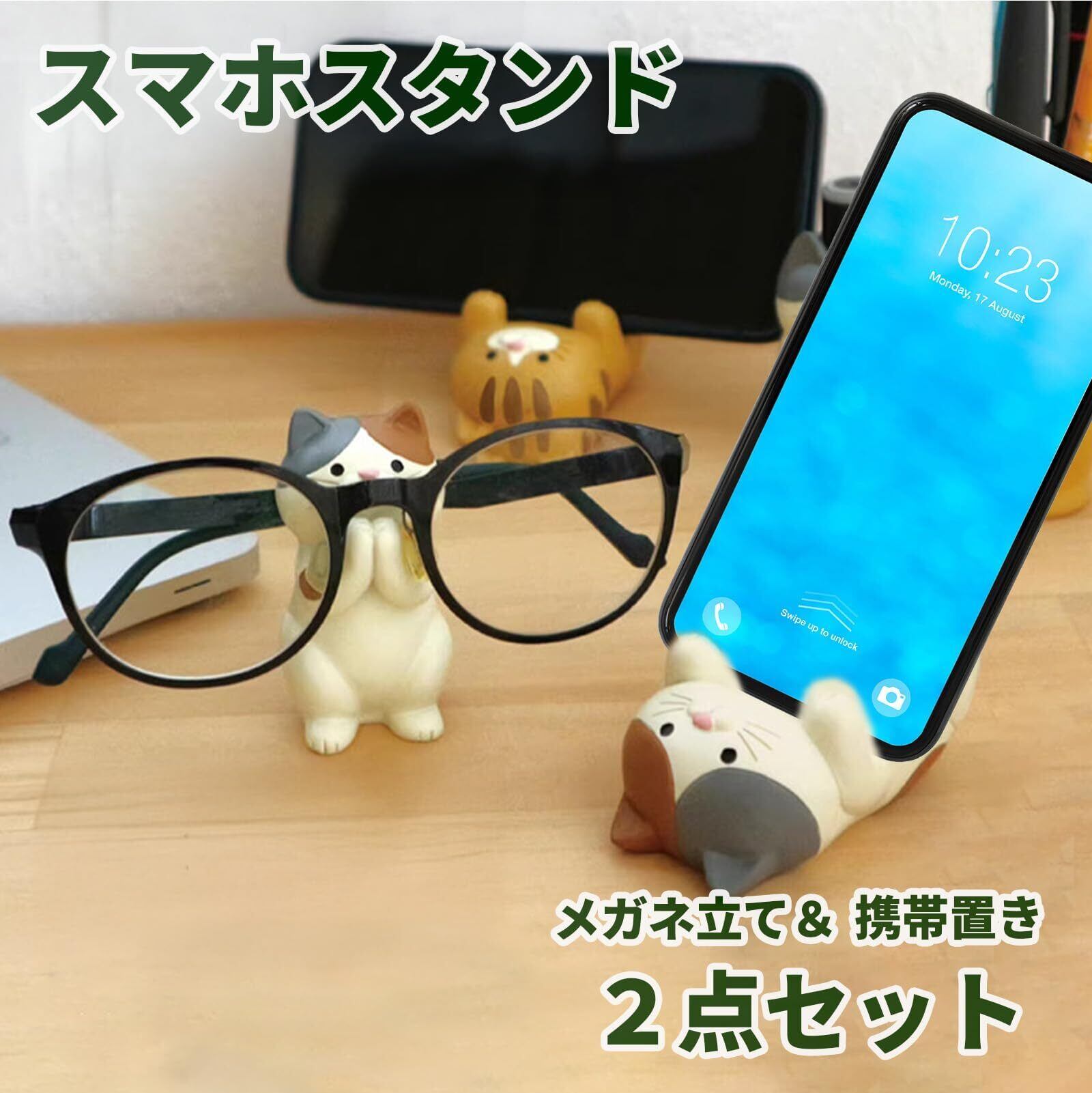 Hyack スマホスタンド 猫 スマホ立て メガネスタンド メガネ置き 携帯スタンド 卓上インテリア
