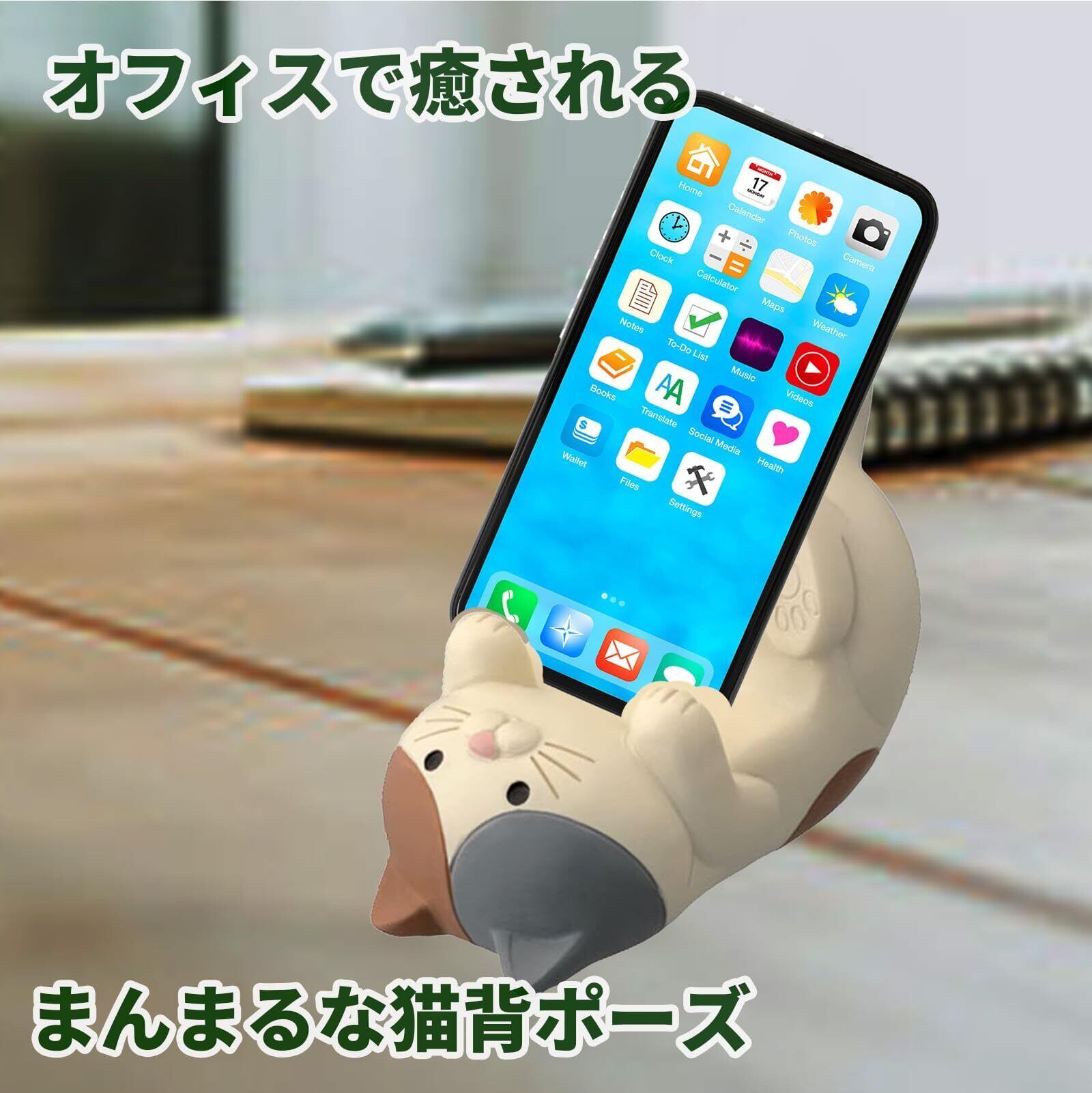 オフィスで癒される猫の置物!まんまるな猫背ポーズとお願いポーズがかわいい、卓上のスマホスタンドとメガネ立ての2点セットです。 使いたい時にさっと取れる&かけやすいメガネスタンドはブルーライトカットメガネや老眼鏡など卓上でしかメガネをかけない方にとっても便利。猫のスタンドが目立つので見つけやすいのもポイント。 スマホスタンドは縦向きでも横向きでも使用可能。横向きで置けば充電しながらお使いいただけます。スマホだけでなく携帯電話やメモを立てかけておくのにも便利です。 置くだけでインテリアとしてもデスクまわりを楽しくしてくれるスタンドセット。使わない時も卓上の癒しスポットに。ユーモアなポーズが笑いを誘う三毛猫のデザインは猫好きプレゼントにぴったりなデザイン。 三毛猫デザインで猫好きプレゼントにぴったり。ちょっとしたプレゼントに渡しやすい手ごろなサイズ感も魅力です。