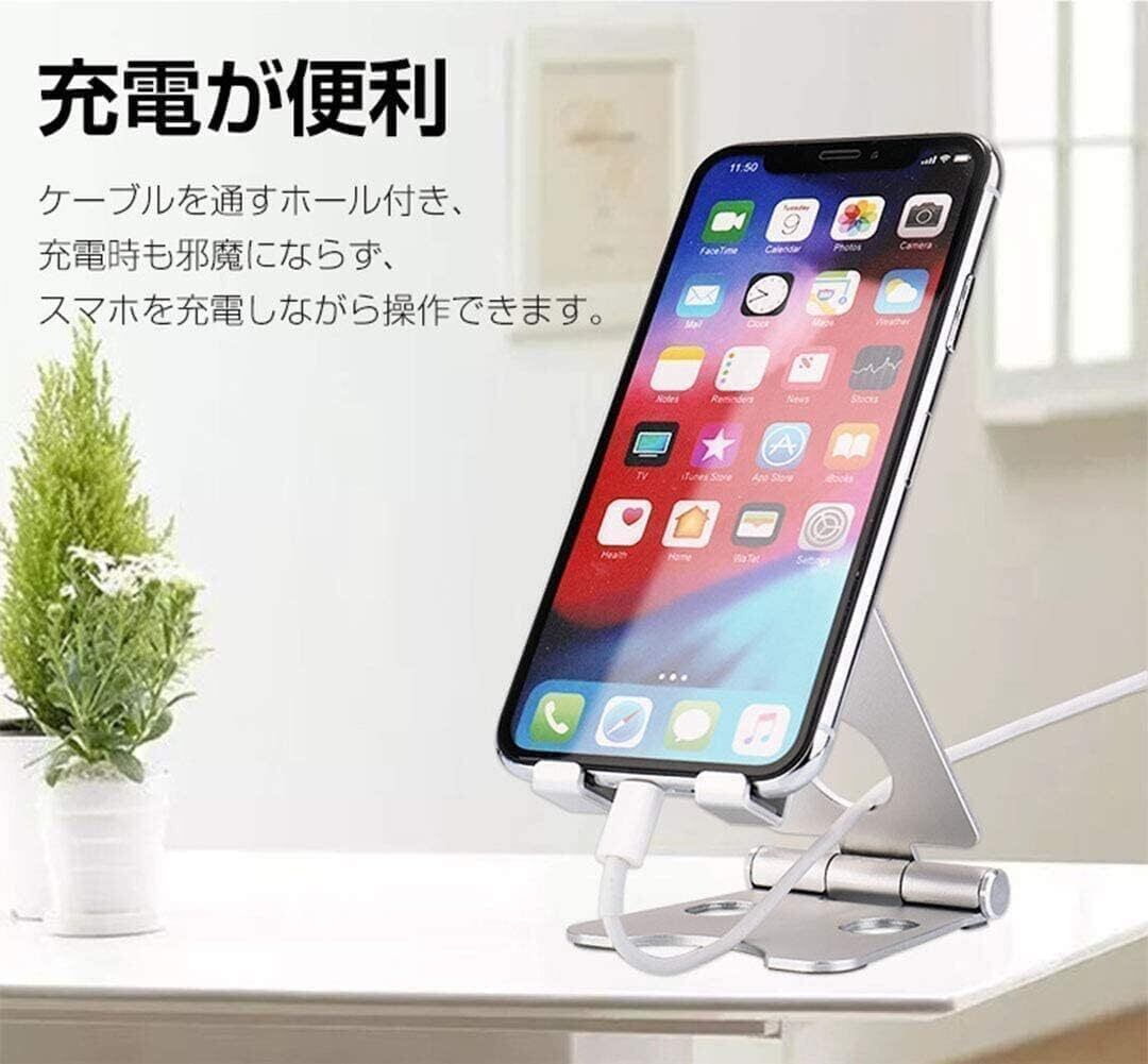 【滑り止めのシリコン】デバイスをしっかり保護するように、スマホスタンドはスマホを載せる爪部分シリコンがついています、スタンドの底部シリコンが付いていて、すべすべな卓面の滑にくいです。スマホ保護と机を滑り防止に役立っています。
