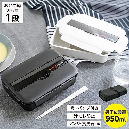 アスベル 弁当箱 ランチボックス 食洗器対応 箸付 1段 Nランタスコレクション TLB-950(バッグ付)Ag抗菌 ブラック