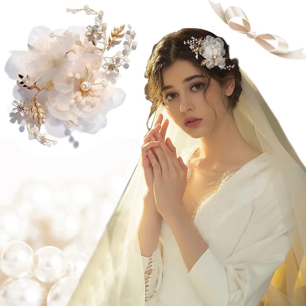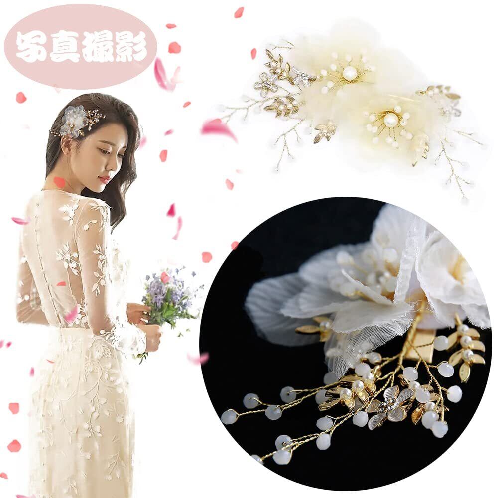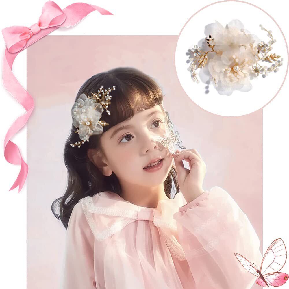 TBDBNR髪飾り 子供髪飾り 花びら フラワーヘアークリップ 1点 花嫁ヘッドドレス 上品なヘアアクセサリー 女の子 結婚式/披露宴/成人式に/子供の発表会/入学式/入園式/卒業式/演奏会/写真撮影/ギフトさんに適用 ヘアピン ホワイト