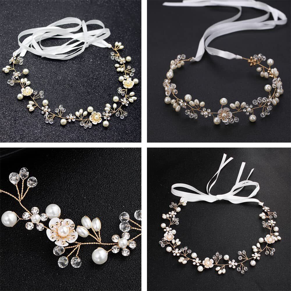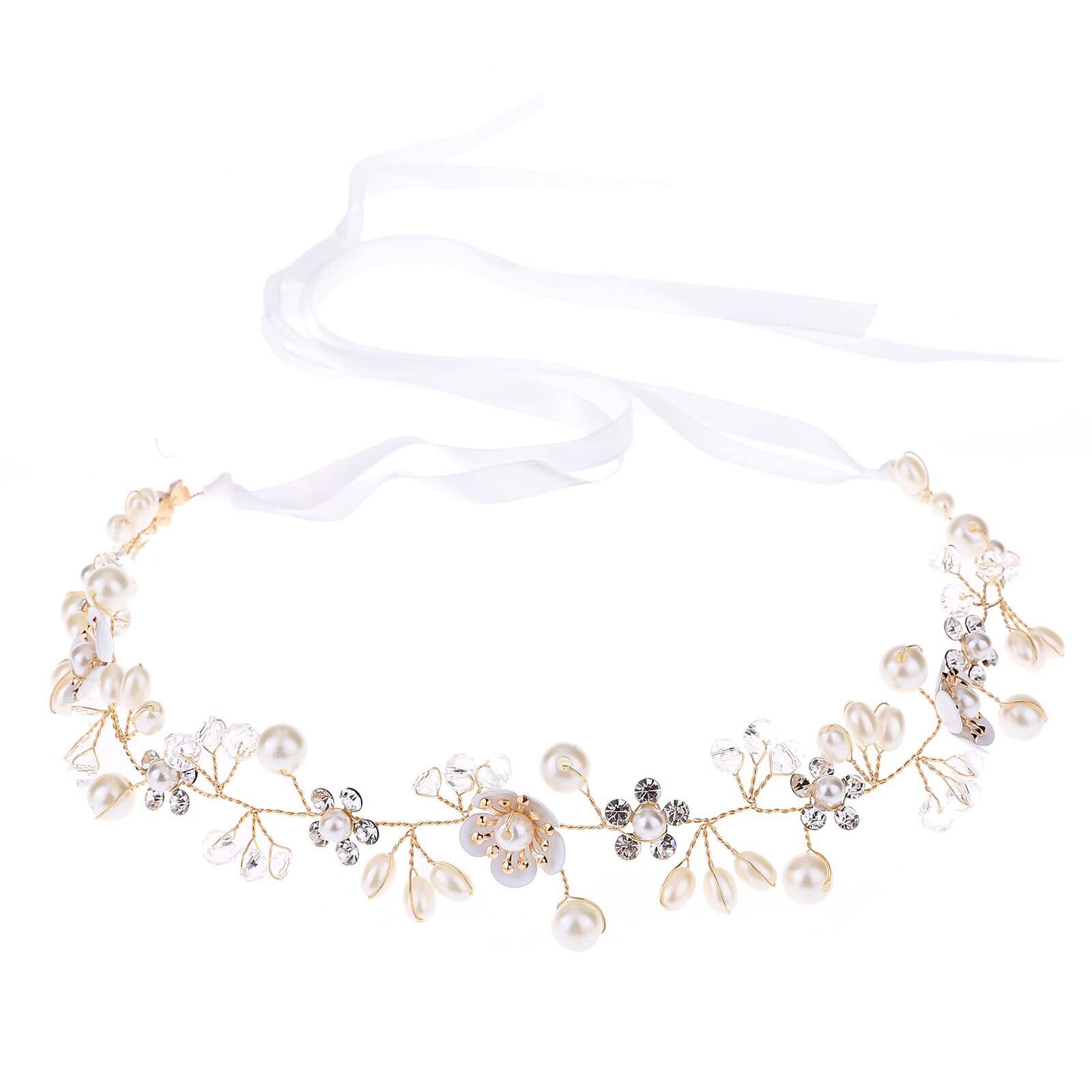 DFsucces パール 花飾り カチューシャ 花冠 ラインストーン 髪飾り フラワー ヘアバンド ブライダル 発表会 卒業式 入学式 女の子 (金色)