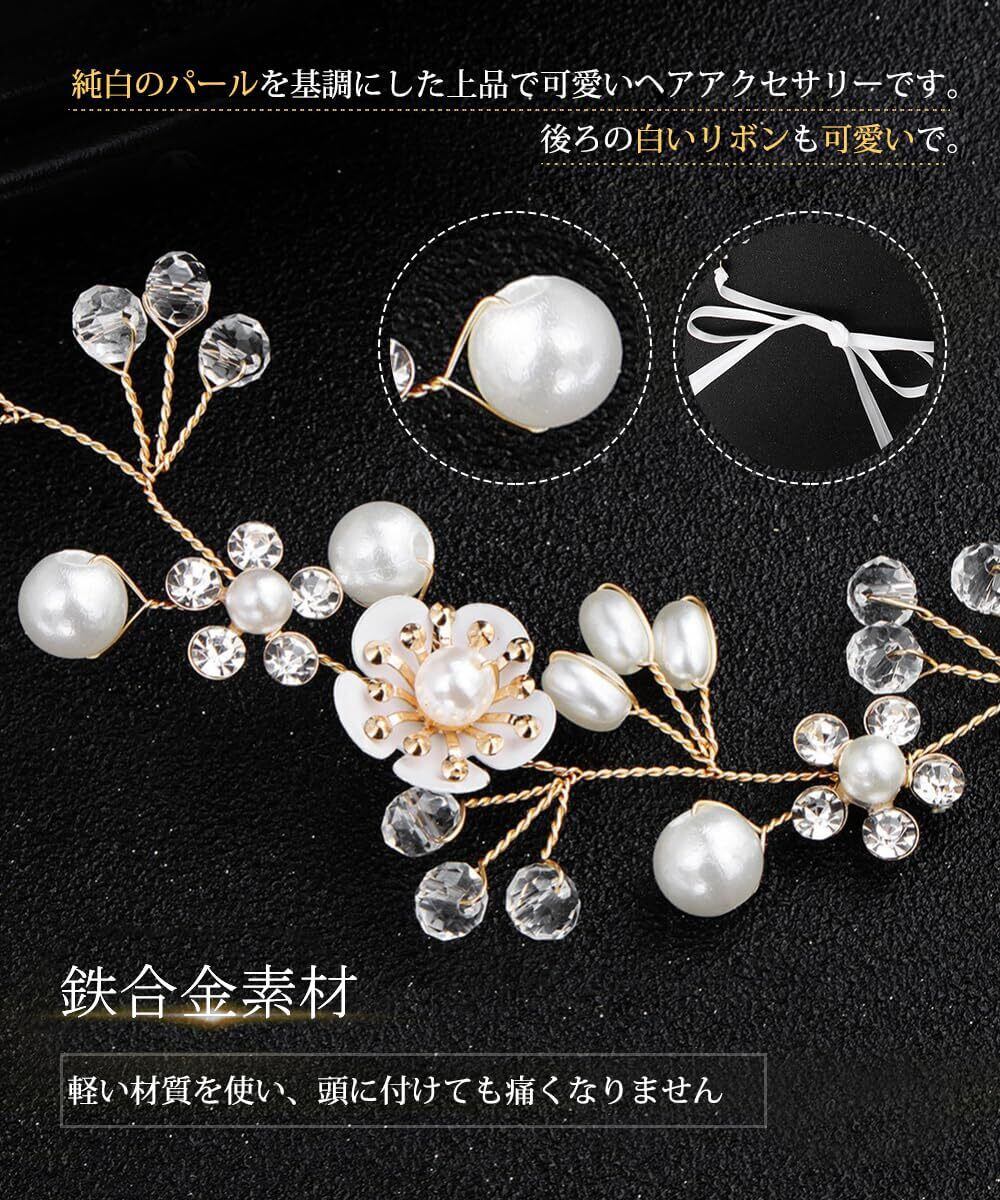 サムコス 髪飾り 花 クリスタルビーズ パール 花かんむり リボン ホワイト ヘッドドレス 花冠 ヘアアクセサリー 結婚式 発表会 披露宴 卒業式 パーティー ダンス 和装 撮影 写真 子供 大人用 (A,ゴールド)