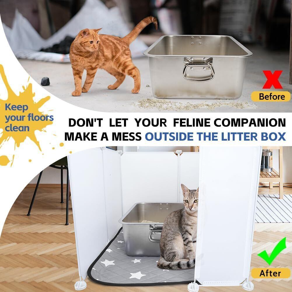 特大サイズで猫砂飛び散り防止: 長さ60cm× 幅52cm× 高さ40cm。猫用トイレに最適なペットガード付き囲いタイプで、猫砂の飛び散りを効果的にガードします。子猫用トイレやシニア猫用低トイレにも対応可能。