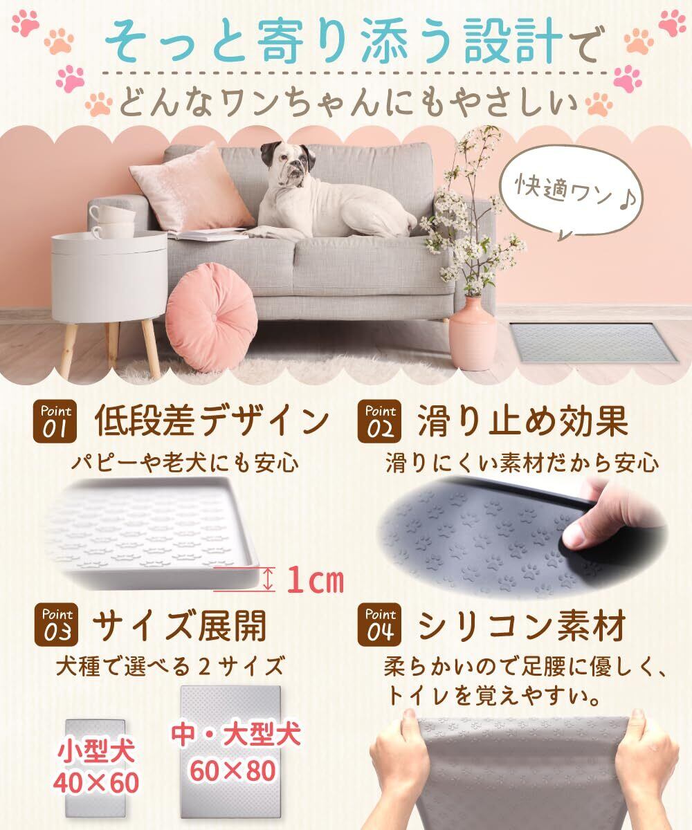 犬 トイレトレー シリコン ワイド 【ドッグトレーナー監修 x 専門機関安全検査済】 漏れないズレない設計 x お手入れ簡単 x 足に優しい (クリーム, M(40×60))
