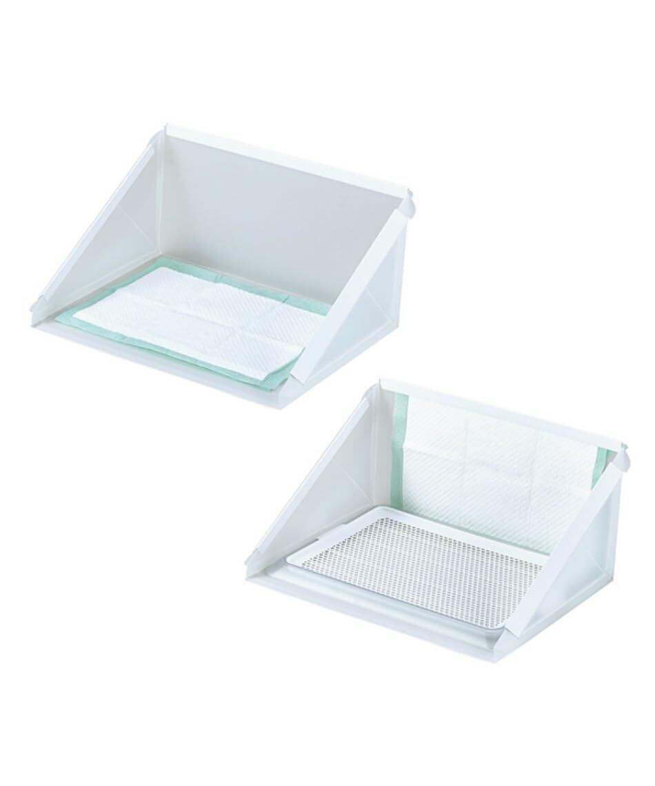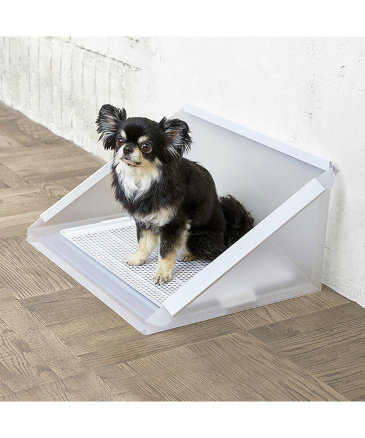トイレ周りの飛散汚れをガード。高い壁ではみ出し防止&目隠し。足をあげるワンちゃんにも最適。さっとたためてお手入れ簡単。